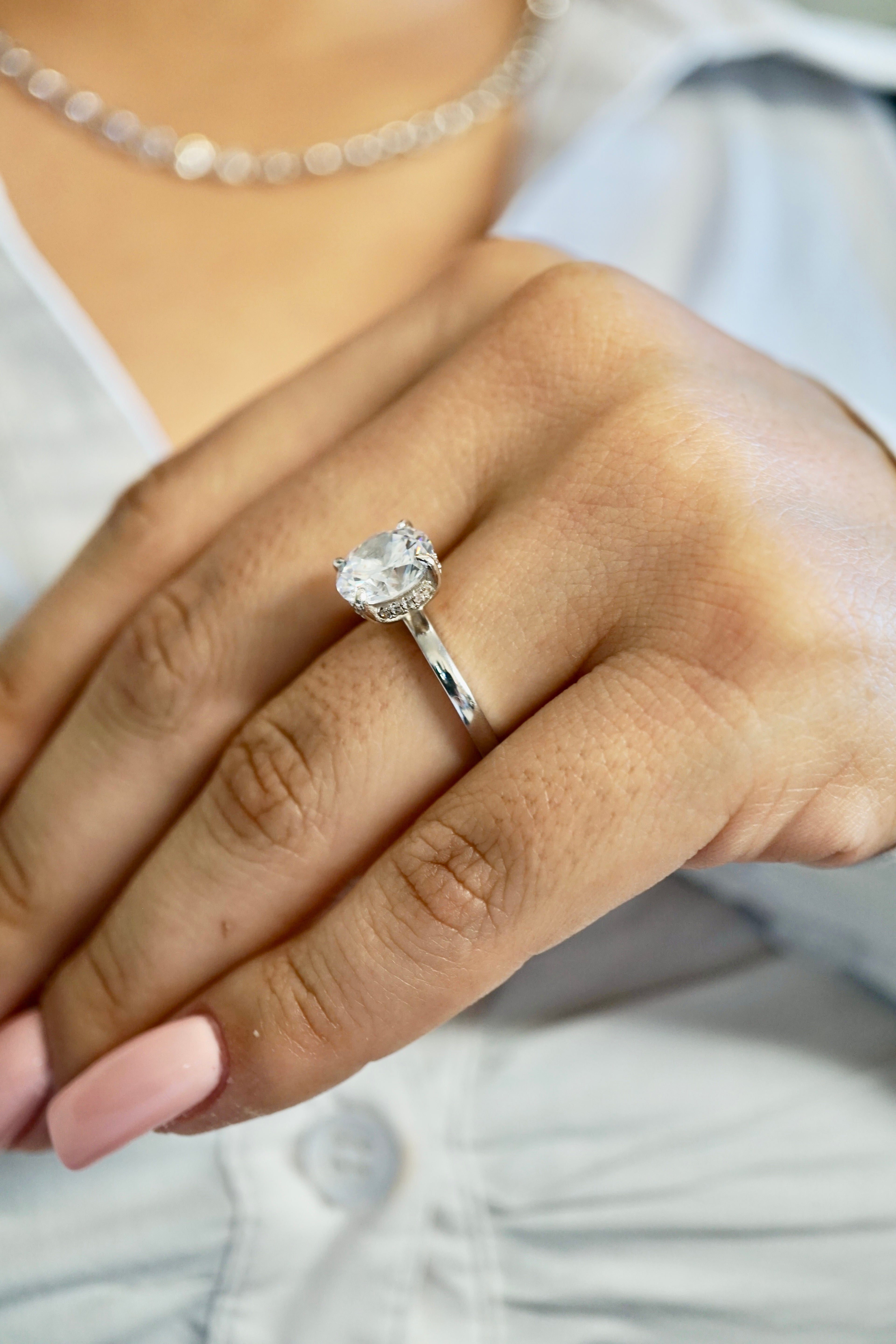 - Halo Stone Type: Moissanite