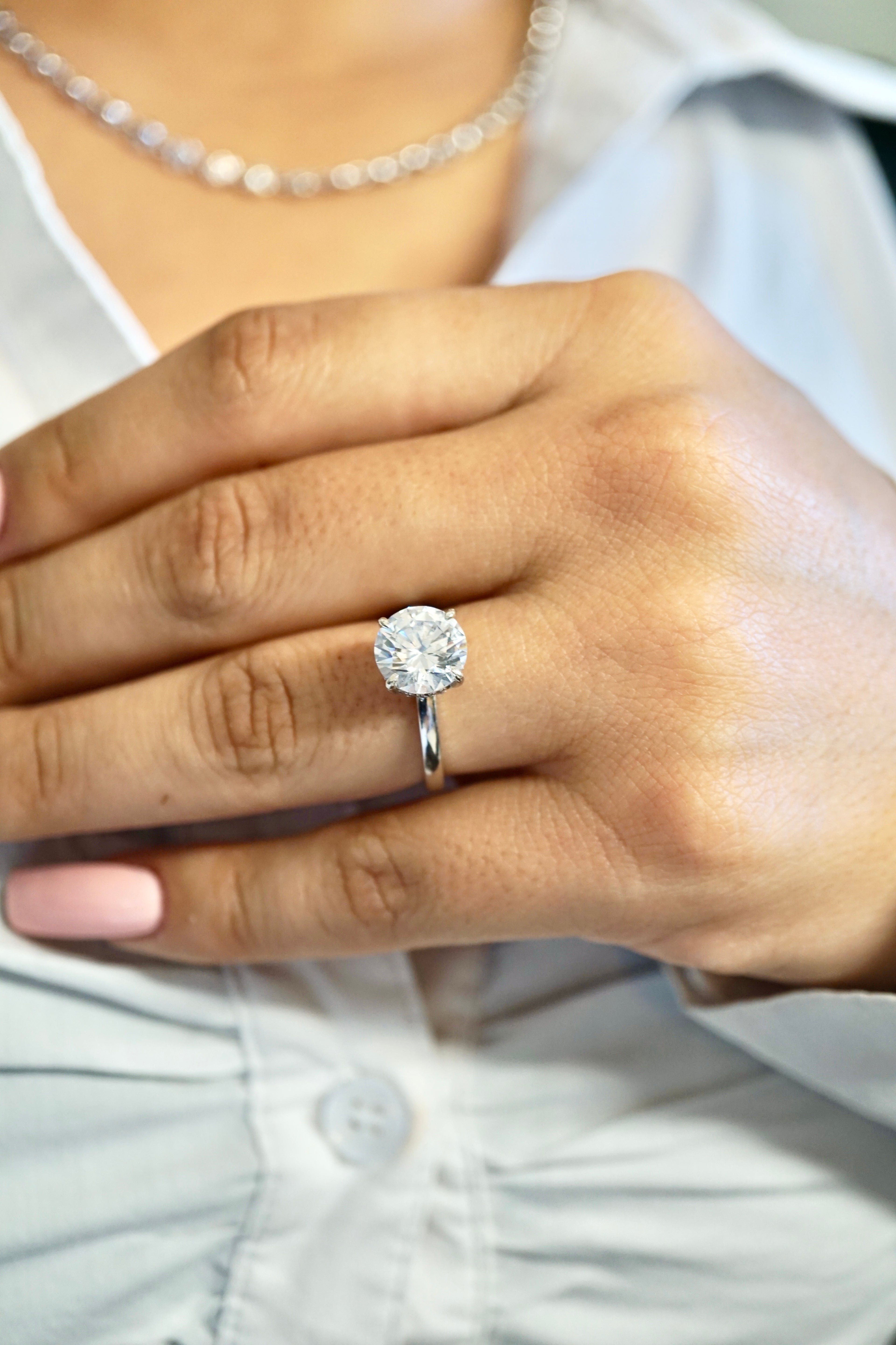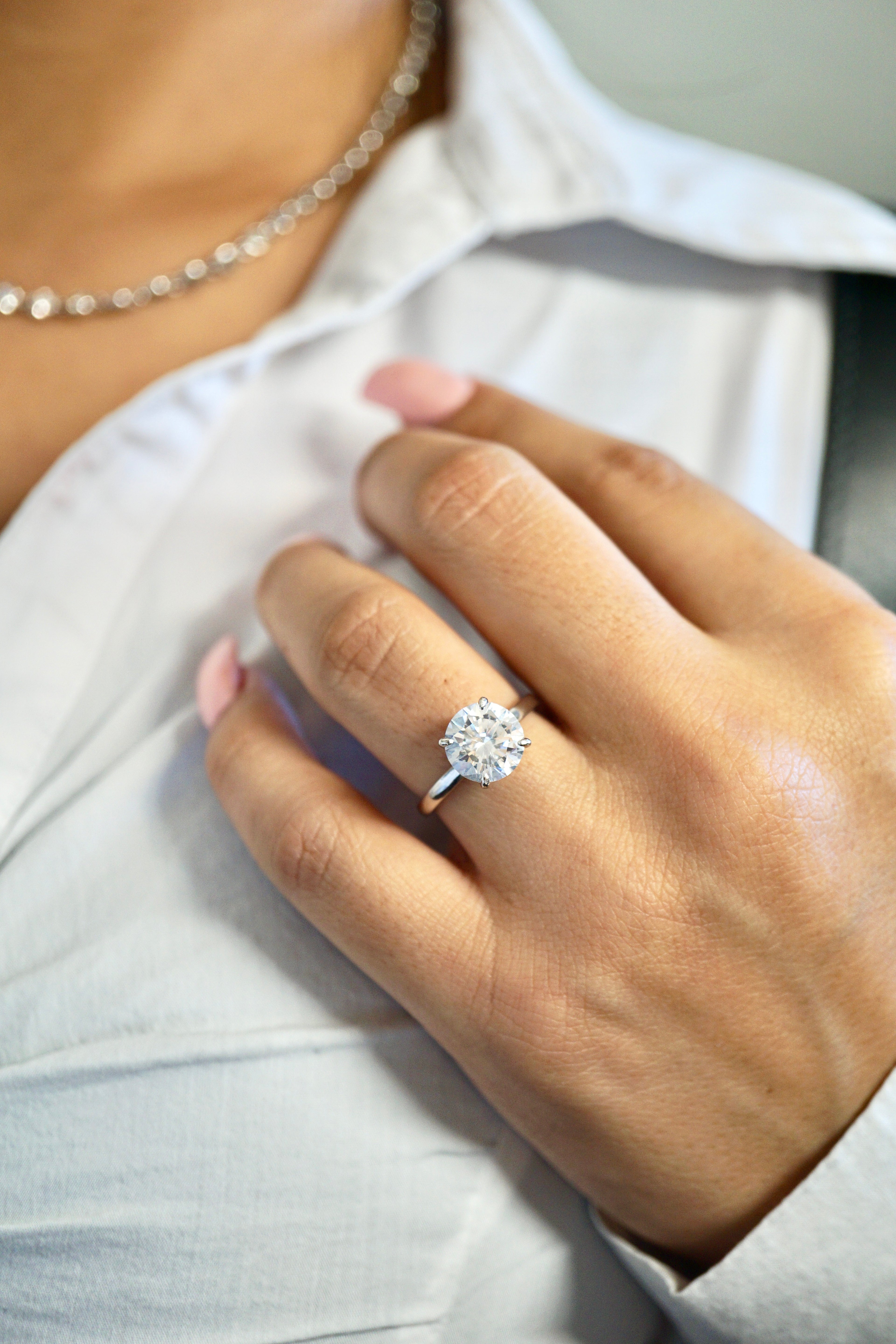 3.0ct Round Cut Moissanite Solitaire Engagement Ring