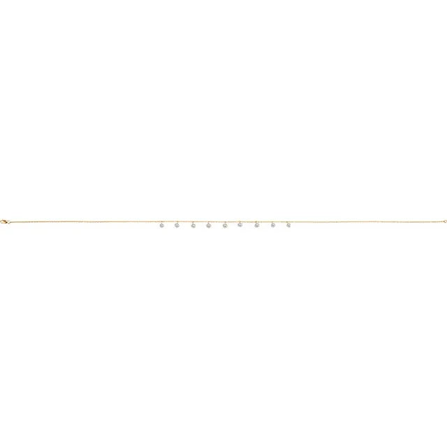 14K Solid Gold White Freshwater Pearl Station Dangle Necklace