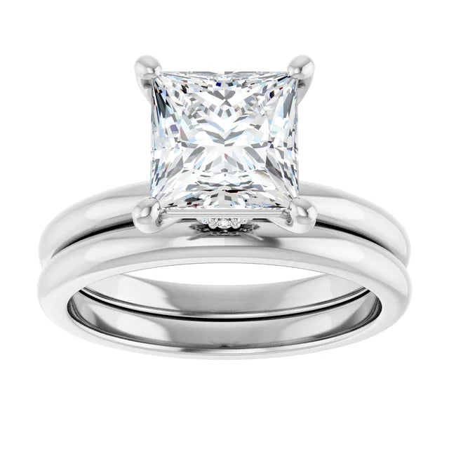 Every detail is designed to radiate brilliance, intention, and devotion. The matching wedding band completes the set with seamless elegance.