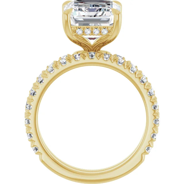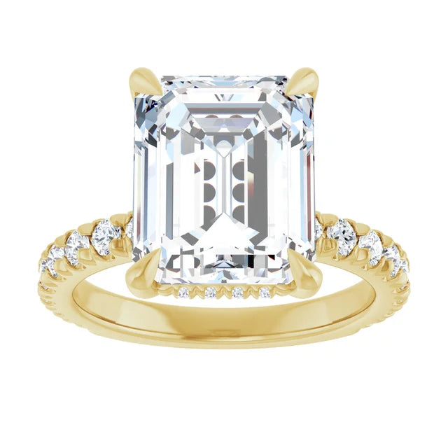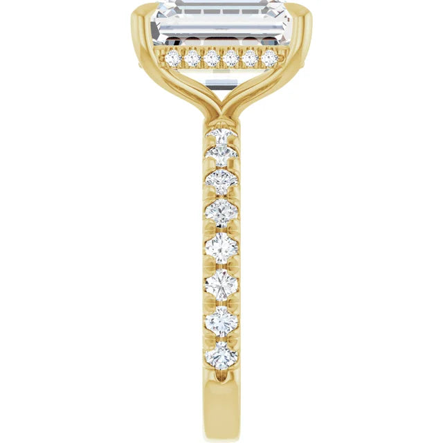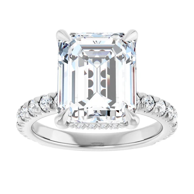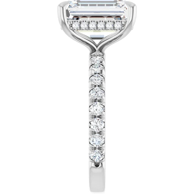 Emerald Cut Moissanite Accented Lab Diamond Engagement Ring