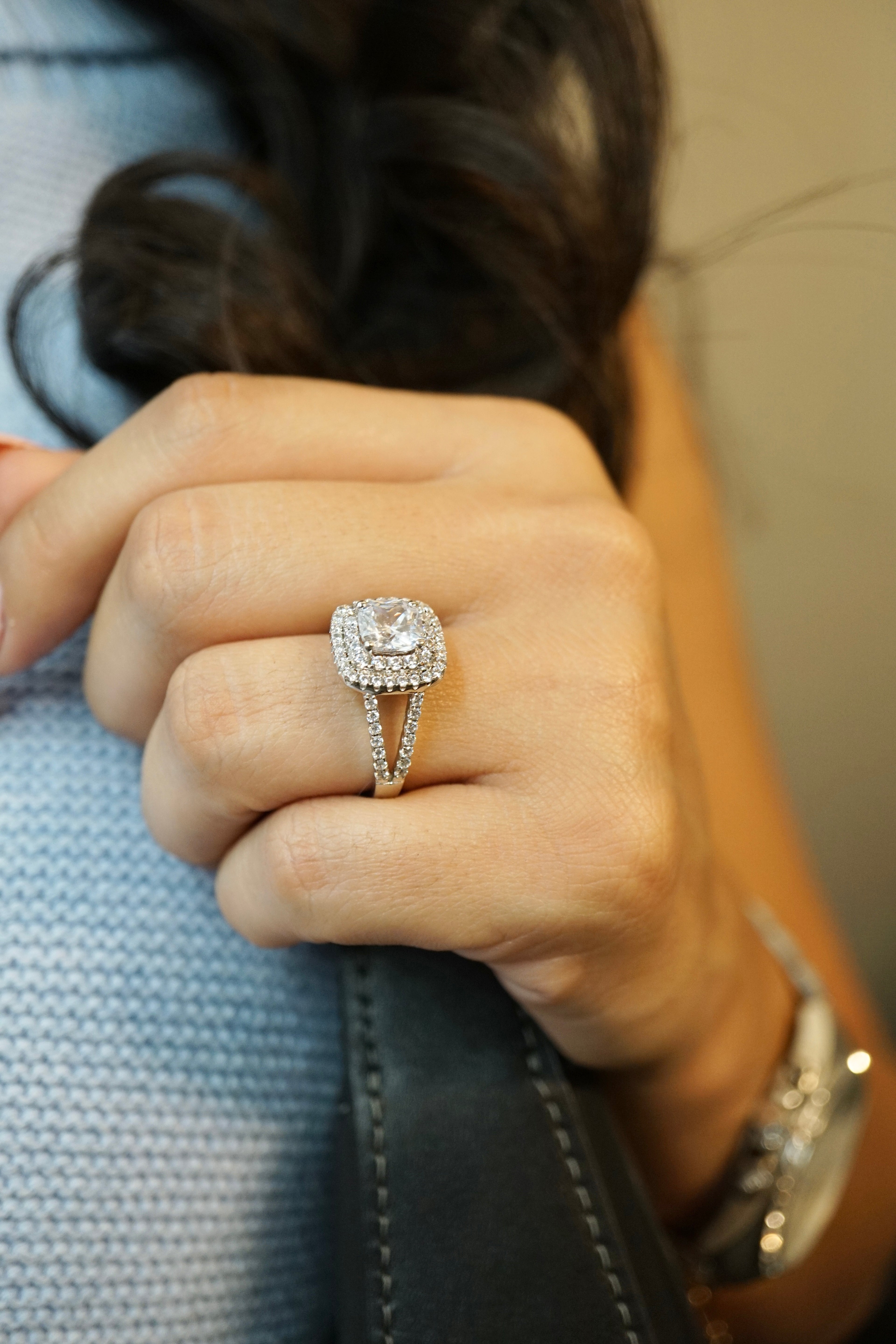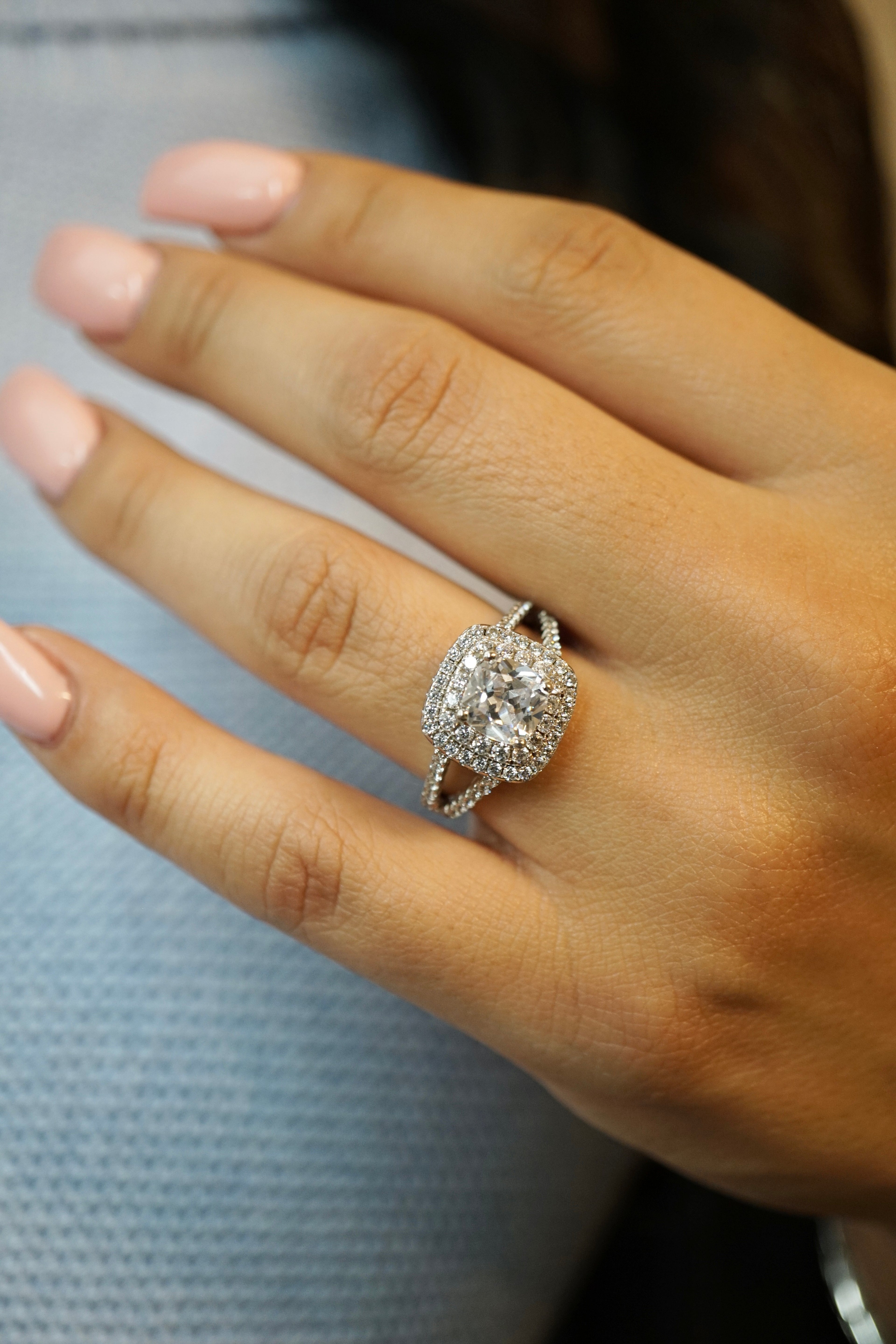 1.5ct Round Cut Moissanite Double Halo Split Shank Engagement Ring