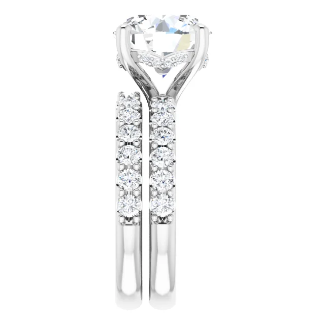 Paired with a perfectly contoured matching diamond wedding band, this two-piece bridal set offers seamless symmetry and exceptional sparkle.