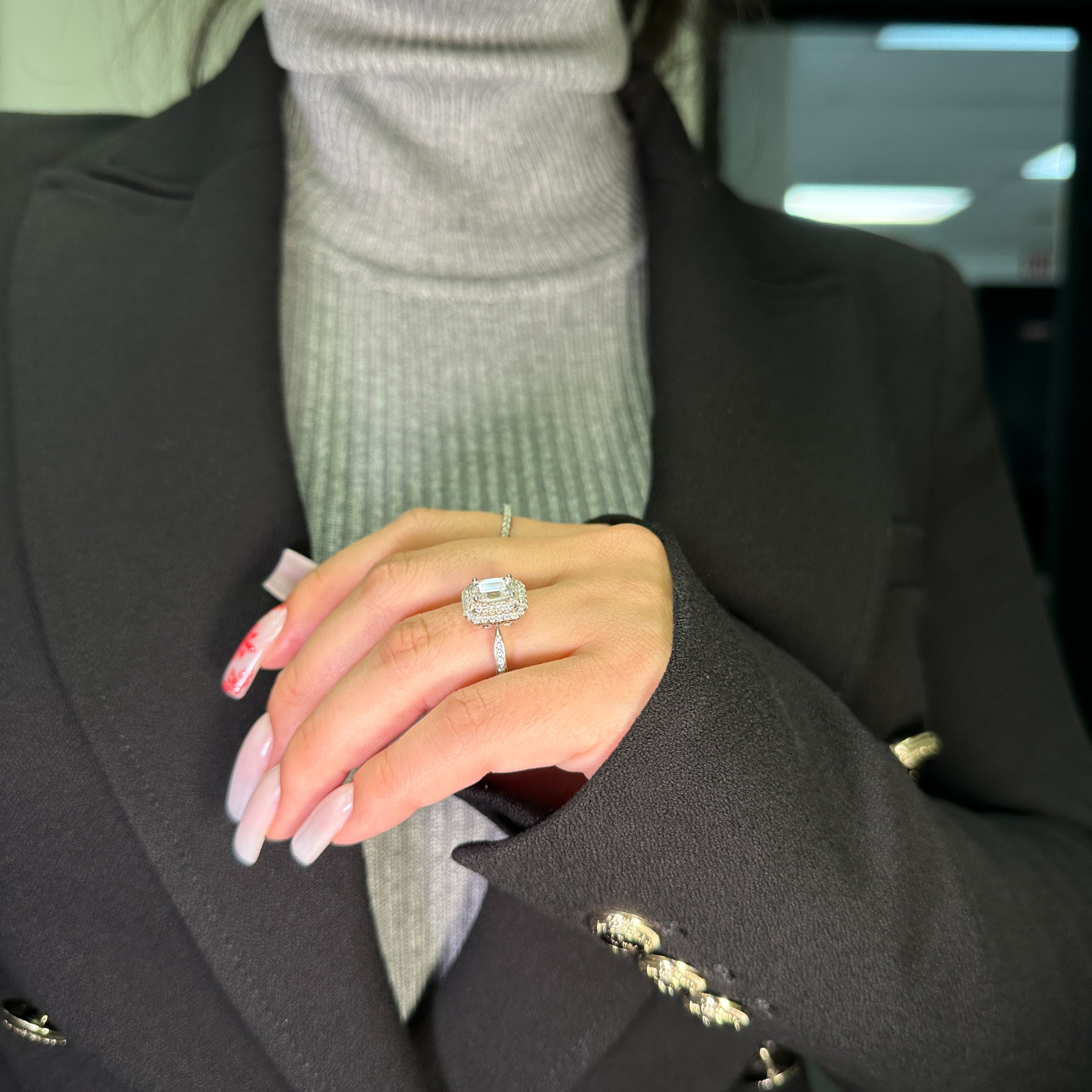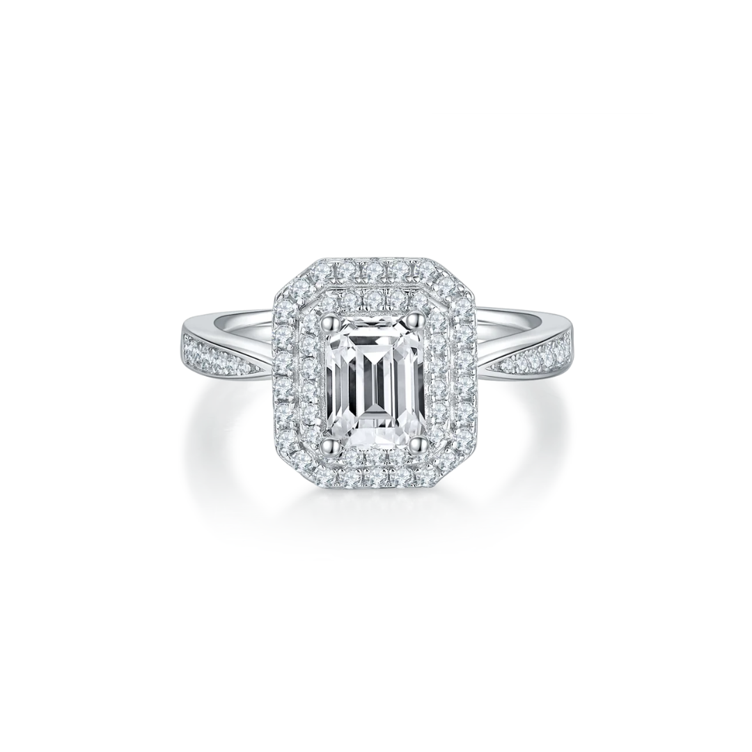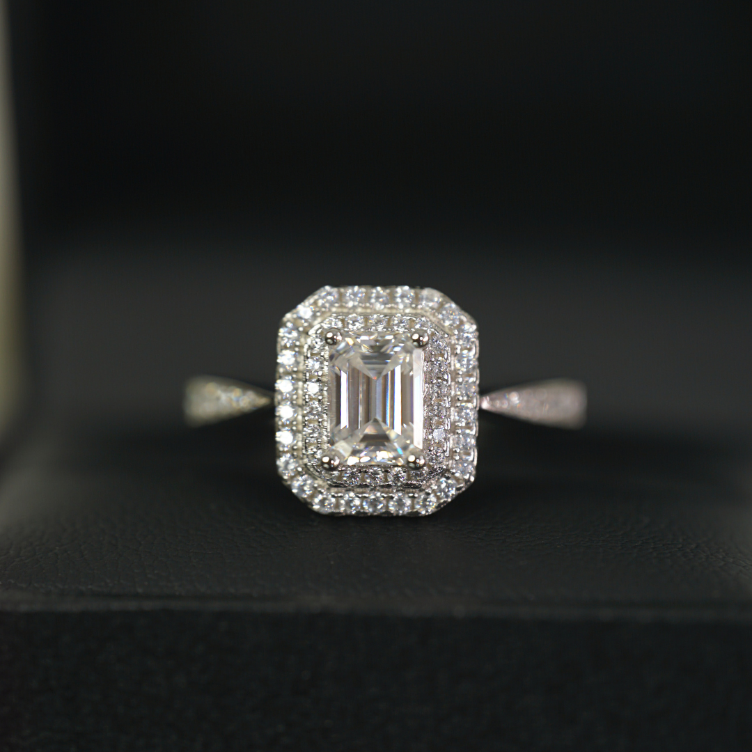 1.0ct Emerald Cut Double Halo Moissanite Engagement Ring