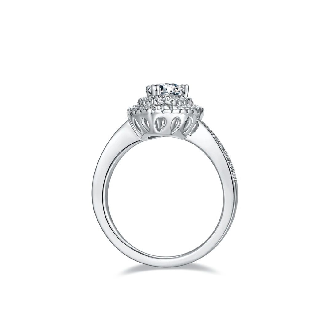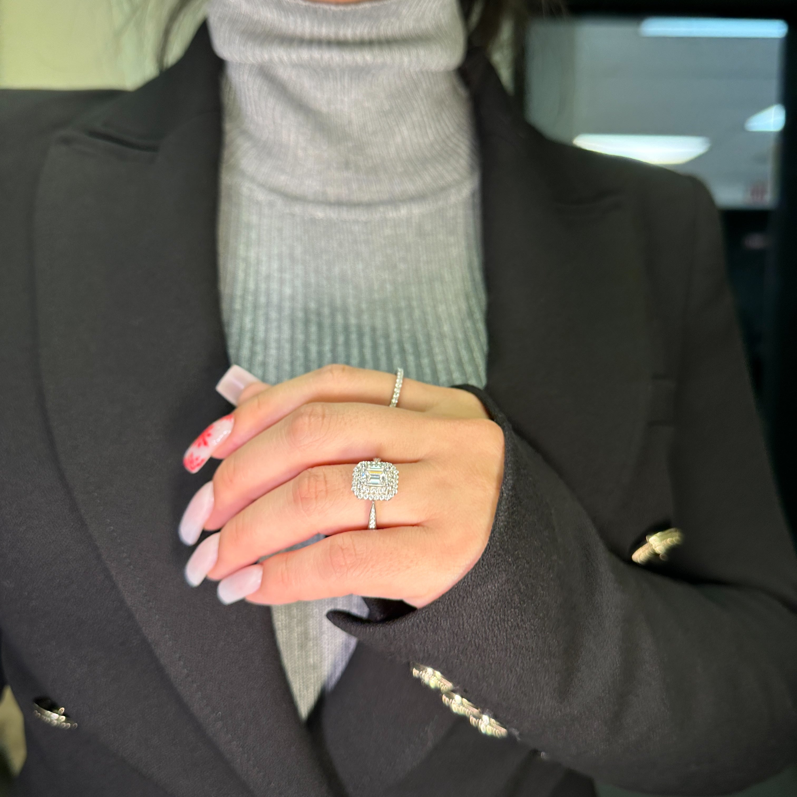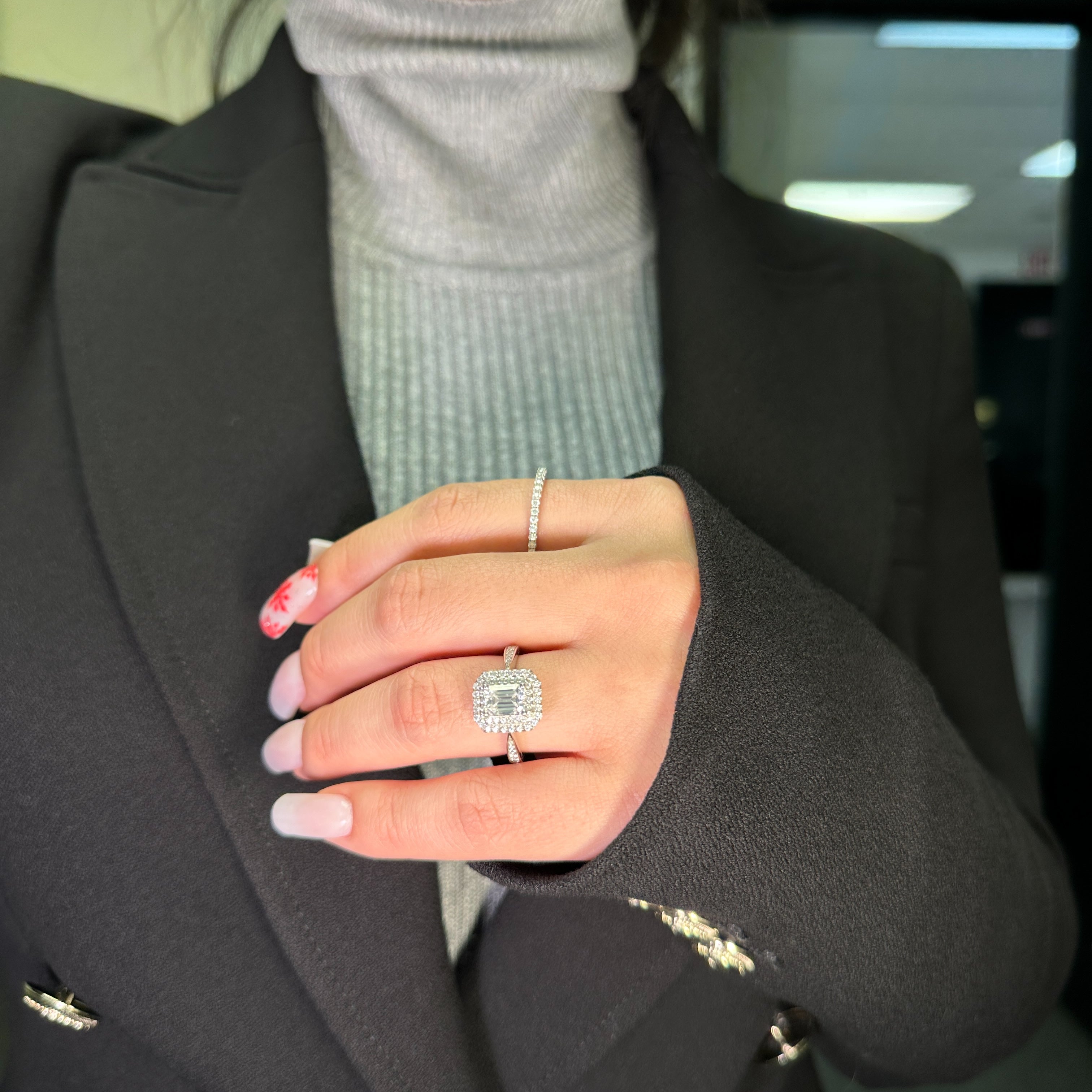 1.0ct Emerald Cut Double Halo Moissanite Engagement Ring