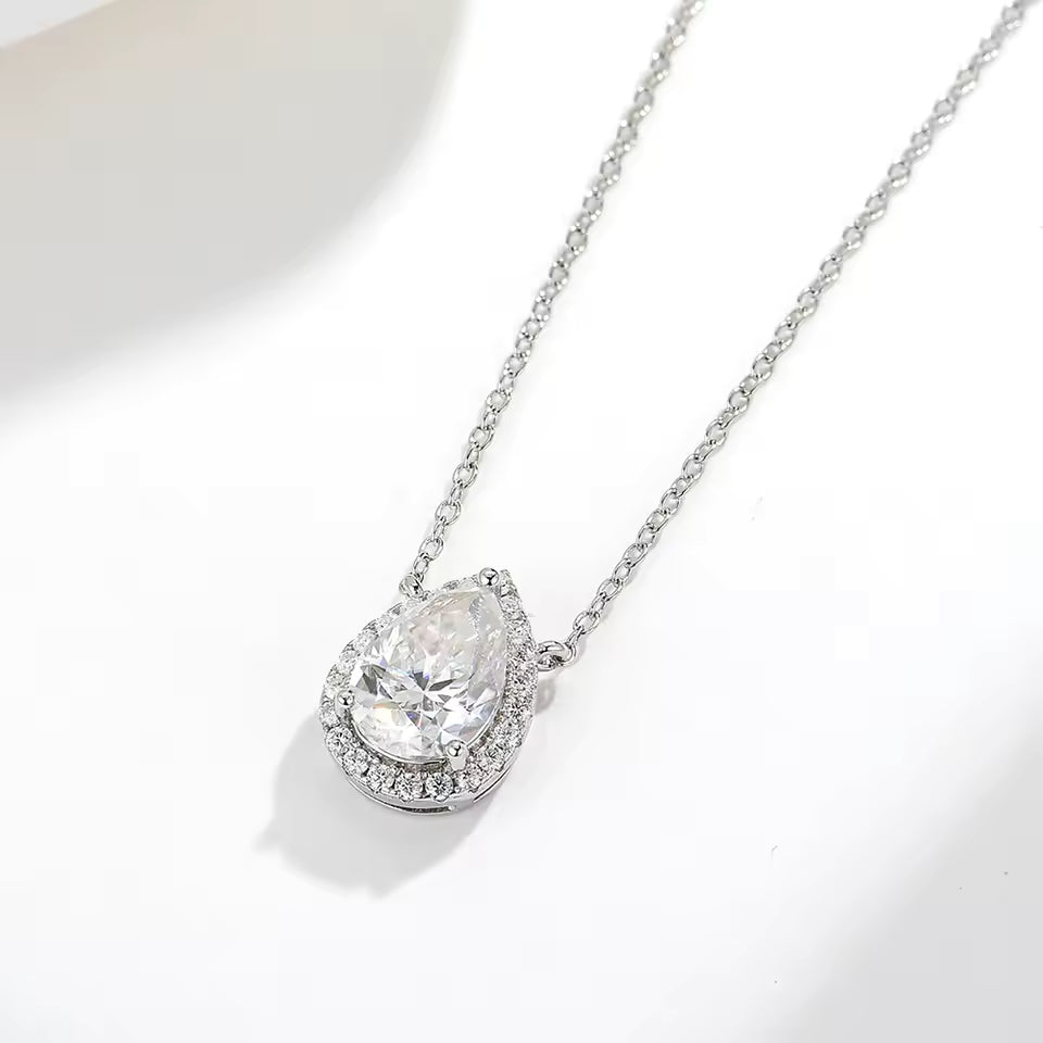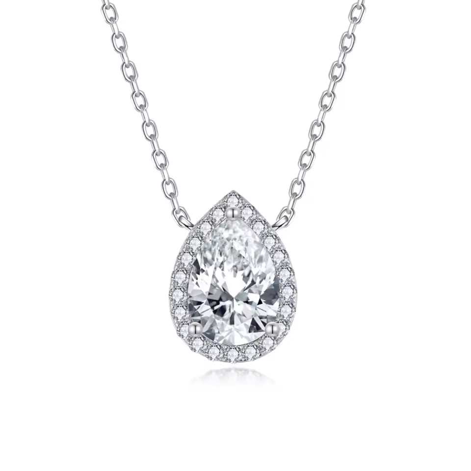 2.0ctw Moissanite Pear Cut Halo Sterling Silver Necklace