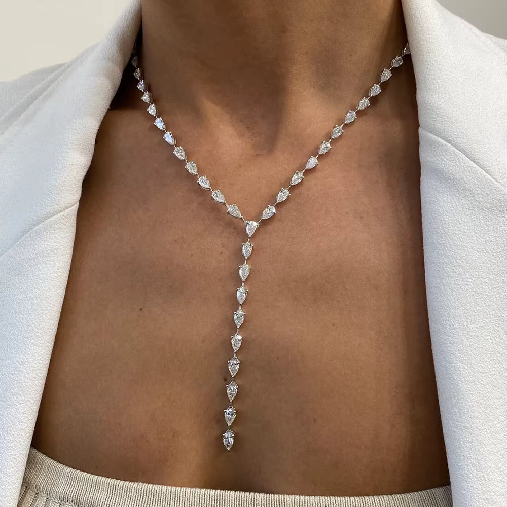 Moissanite Pear Cut Luxury Bridal Sterling Silver Necklace
