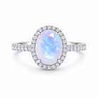 Oval Cut Moonstone Halo Sterling Silver Ring