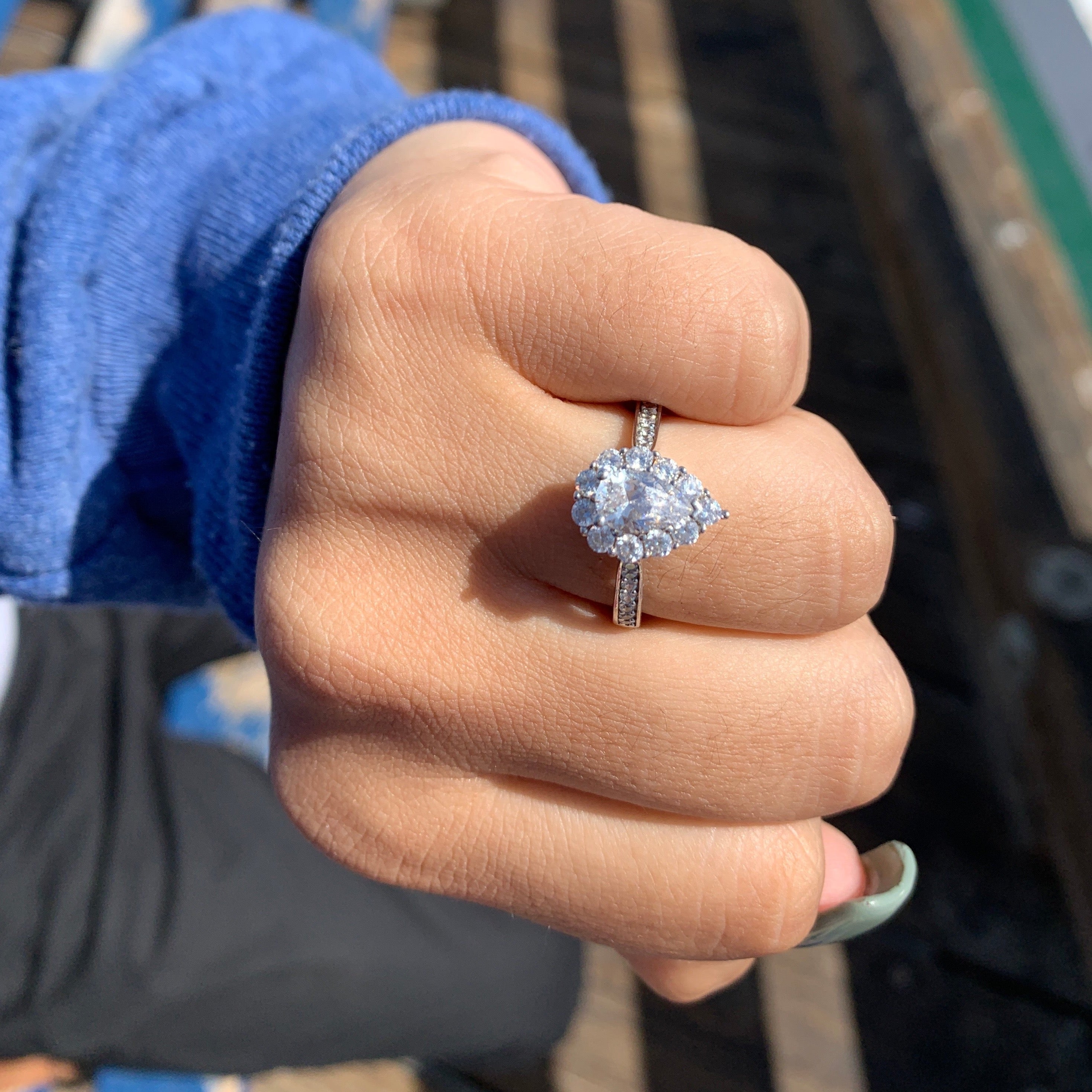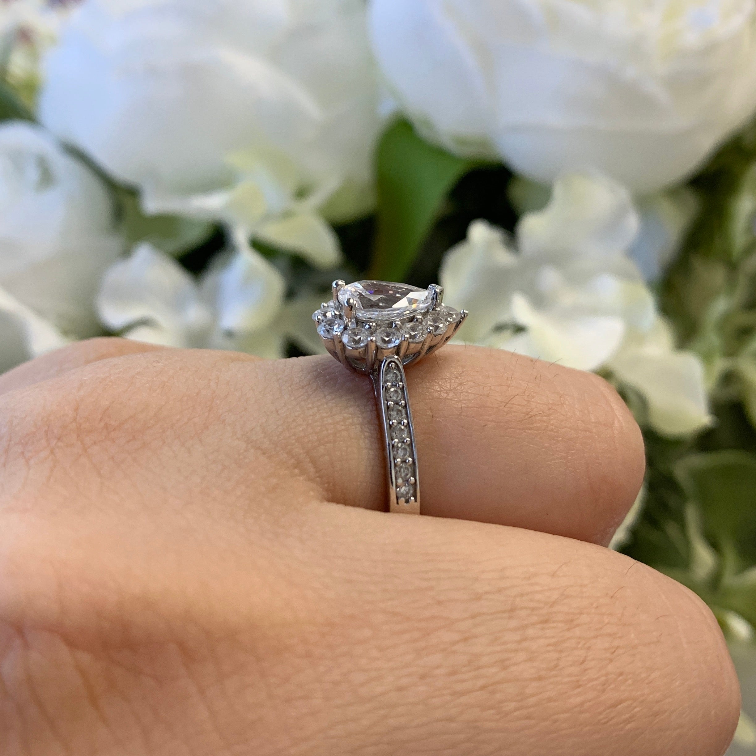 Pear Cut Vintage Inspired Halo Sterling Silver Ring