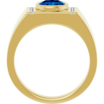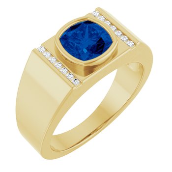 A bold symbol of depth. This striking men’s ring features a captivating cushion-cut lab-created blue sapphire, bezel-set in a 18k solid gold setting. Every detail is thoughtfully designed to balance strength and elegance, creating a ring that feels both powerful and personal.