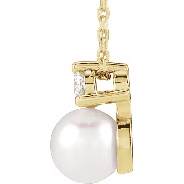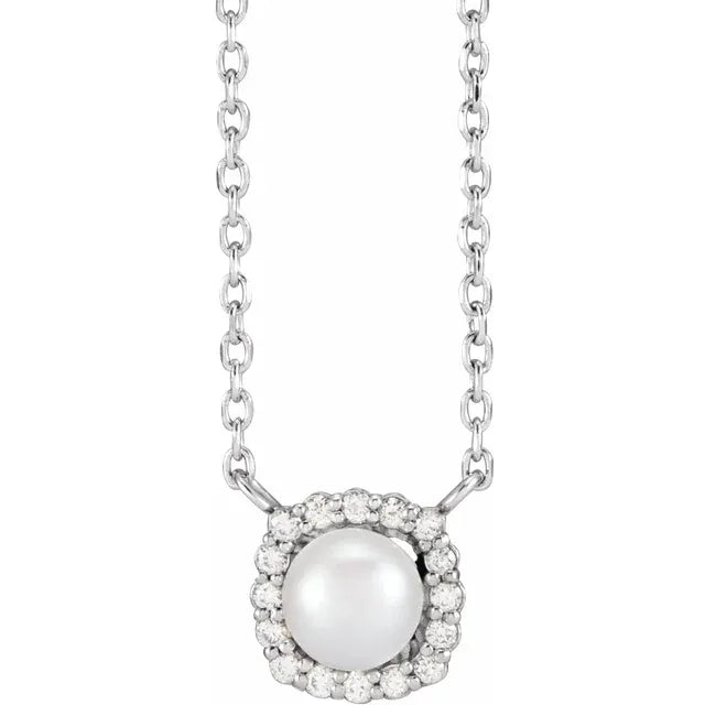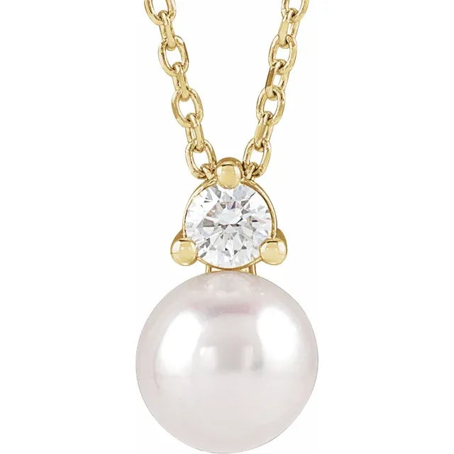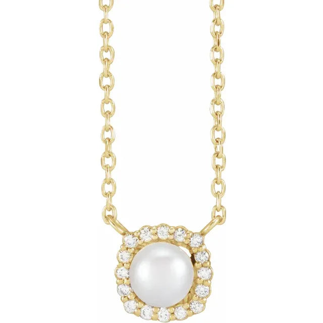 Pearl and 1/10CTW Natural Diamond 14K Solid Gold Necklace