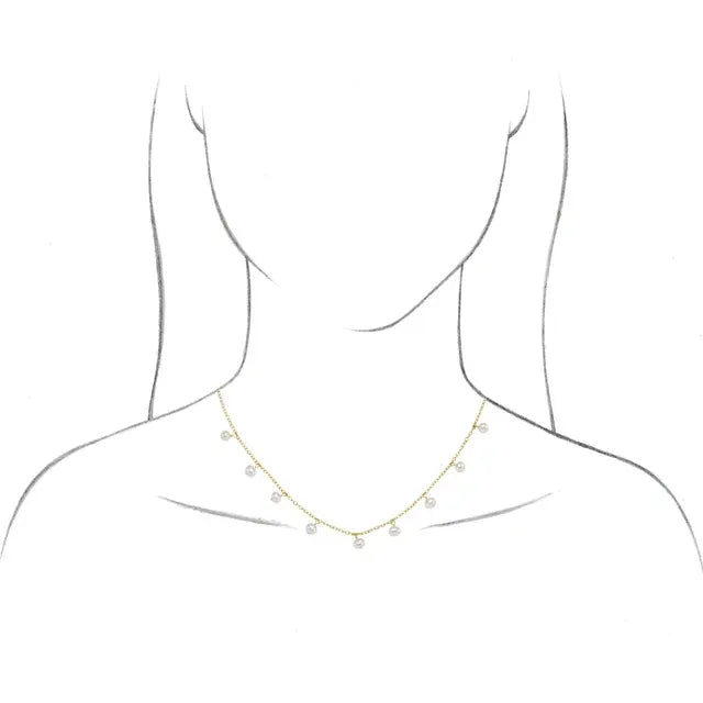14K Solid Gold White Freshwater Pearl Station Dangle Necklace