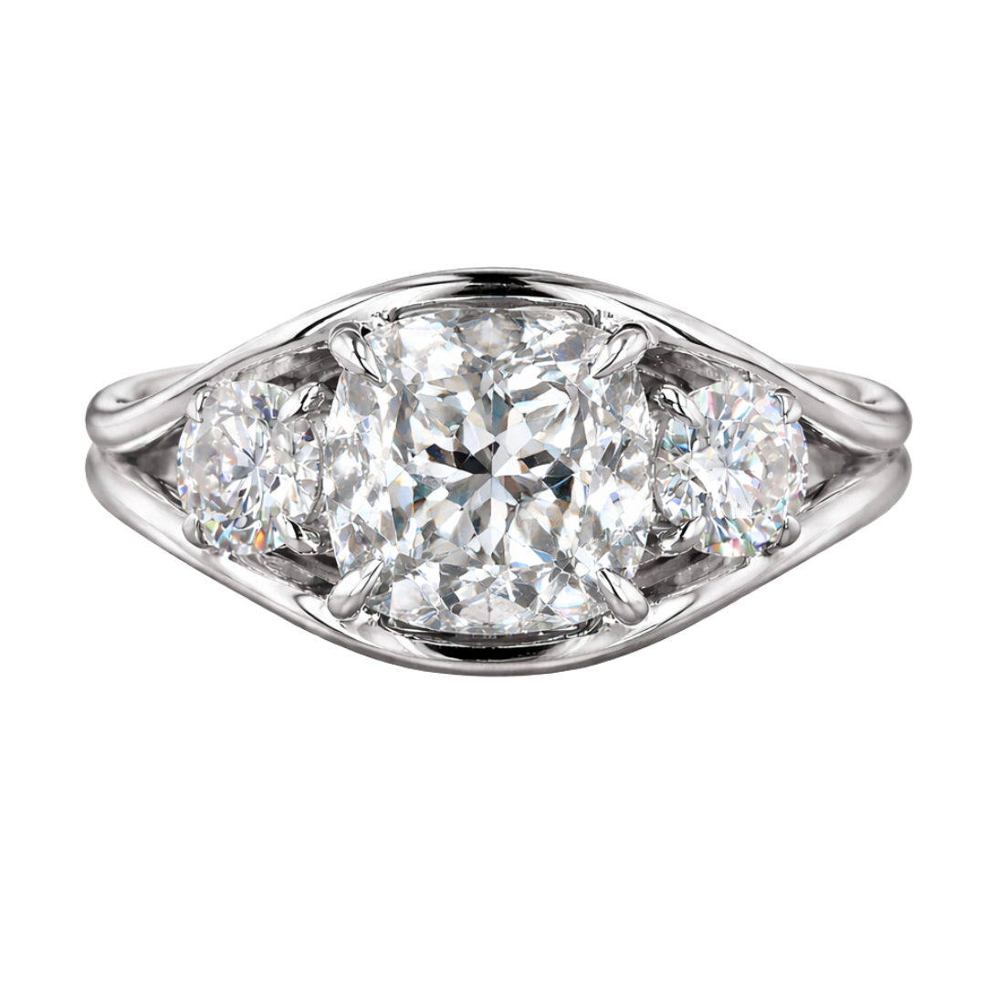 3.0ct Cushion Cut Lab Diamond Three Stone Engagement Ring