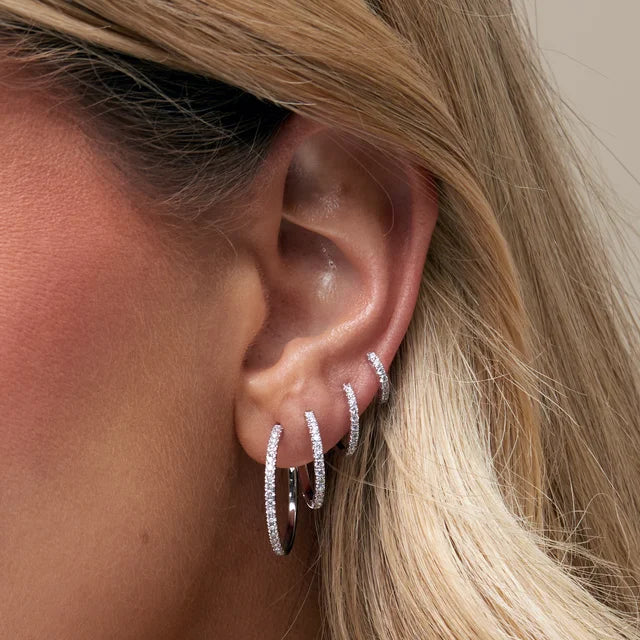 The only hoops you need. These diamond huggie hoops are the perfect jewelry staple that will draw attention with their stunning design. Elevate your style and confidence with these stunning hoops.