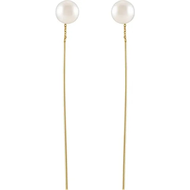 Cultured White Freshwater Keshi Pearl Hoop Dangling Earrings