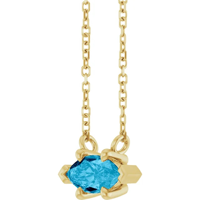 Delicately modern with a touch of vintage charm, this marquise-cut aquamarine necklace exudes elegance. The natural aquamarine gemstone is securely set in 14K solid gold, showcasing its mesmerizing blue hue and unique shape. Suspended from a classic fine chain, this dainty yet striking piece is perfect for everyday wear or layering with other favorites.