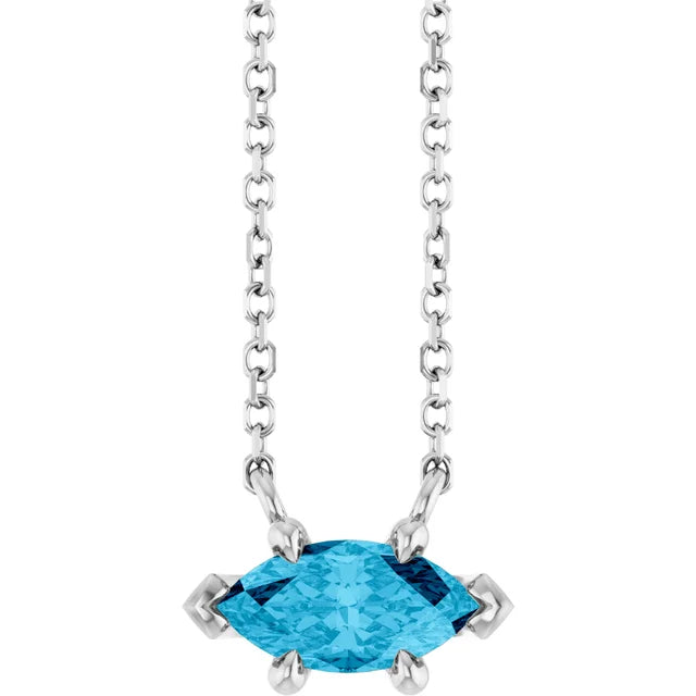East-West Set Marquise Aquamarine 14K Solid Gold Necklace