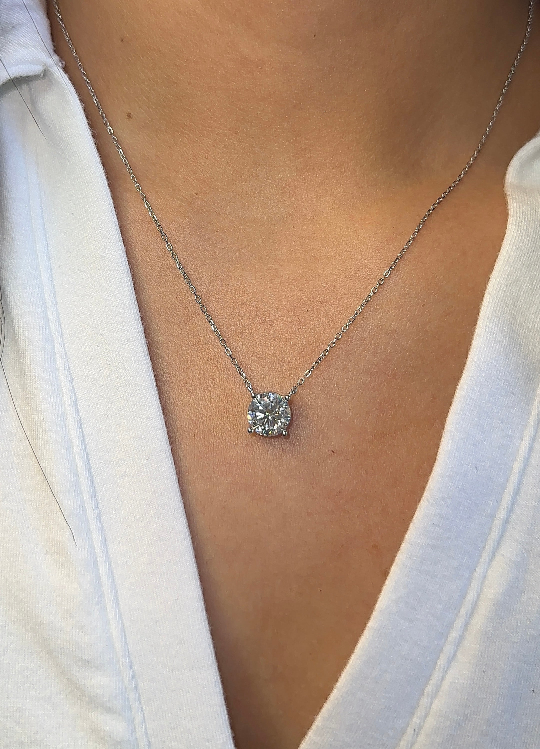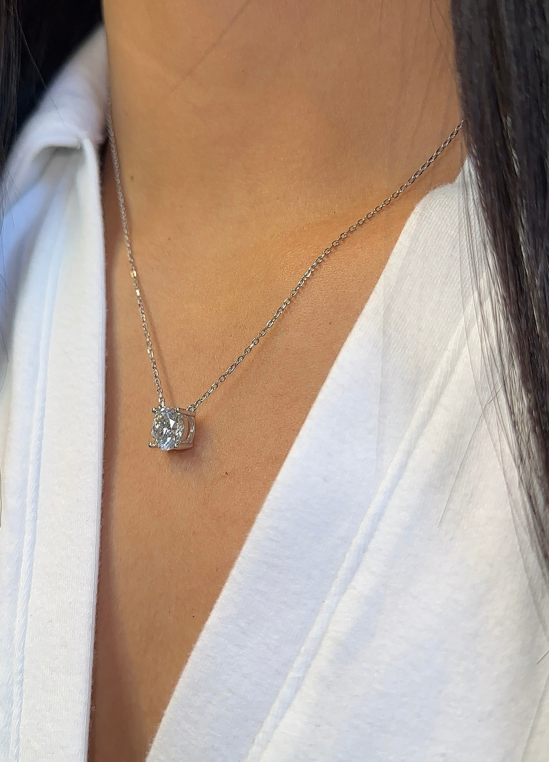 This simple, yet classy Moissanite round cut cable chain necklace is the perfect piece for a dainty everyday look!