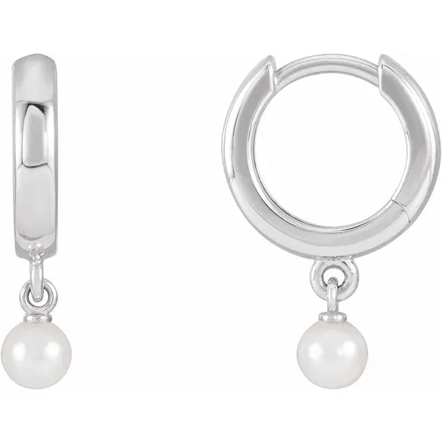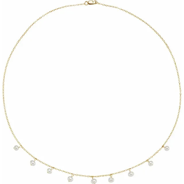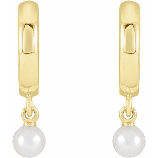 14K Solid Gold Cultured Seed Pearl Dangle Earrings
