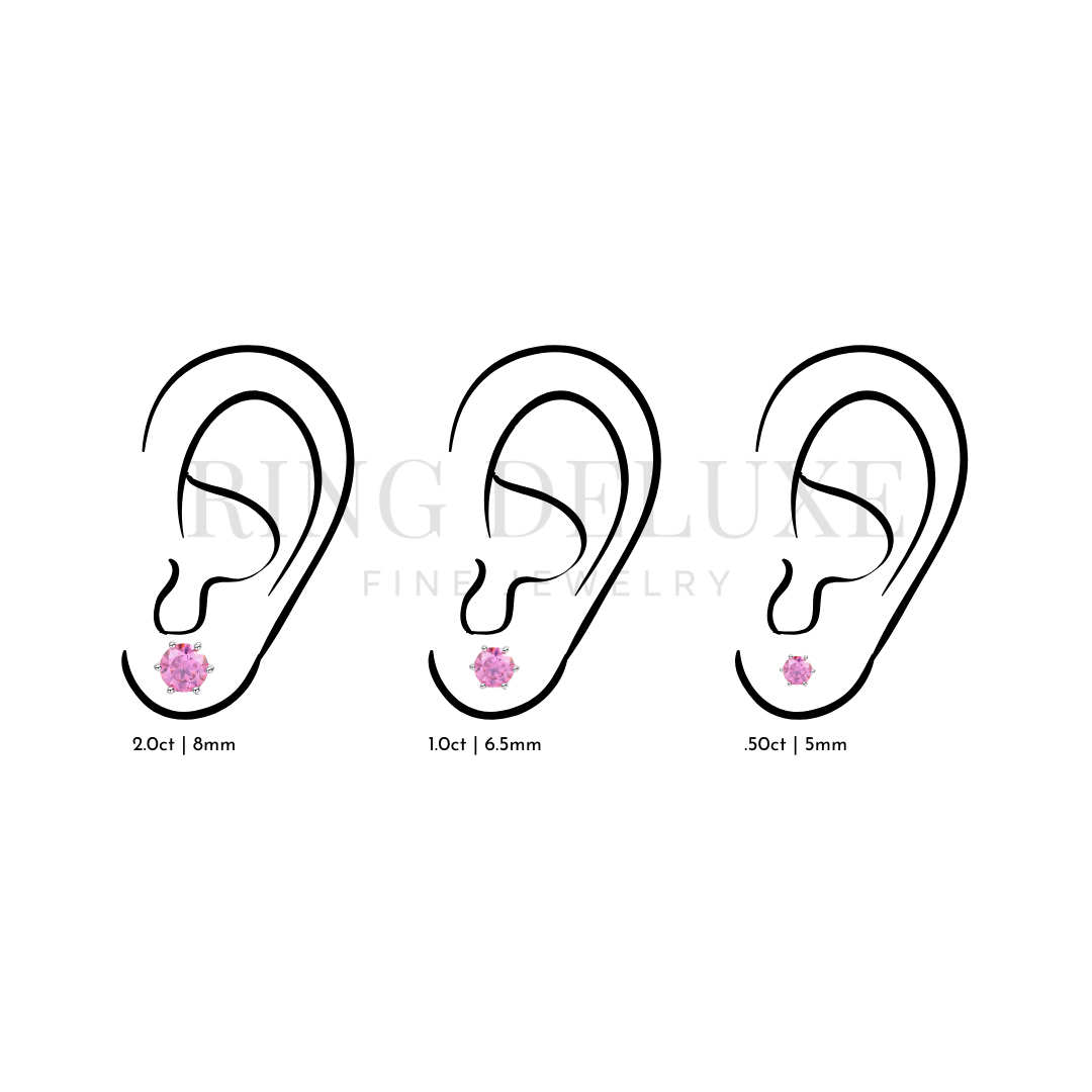 Our NEW Pink Moissanite studs are a show stopper! Featuring 6 prongs, these studs are for sure a new favorite here at Ring Deluxe Jewelry.