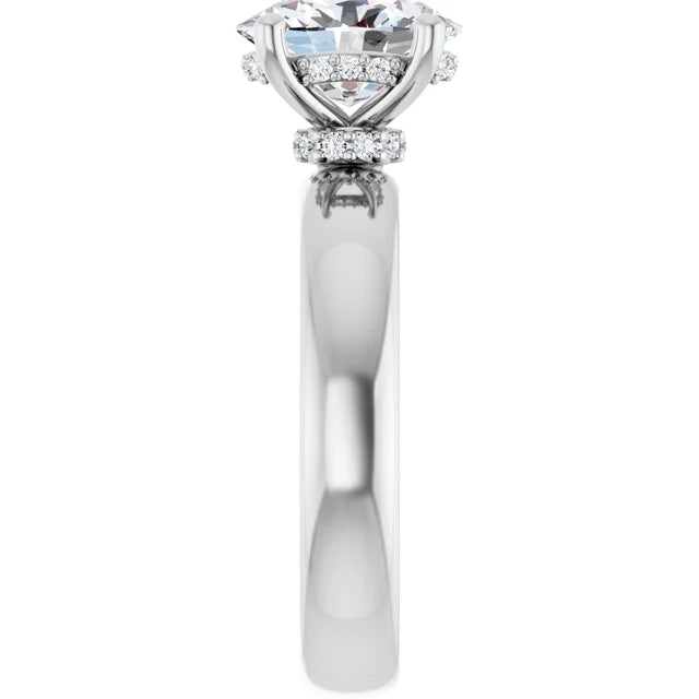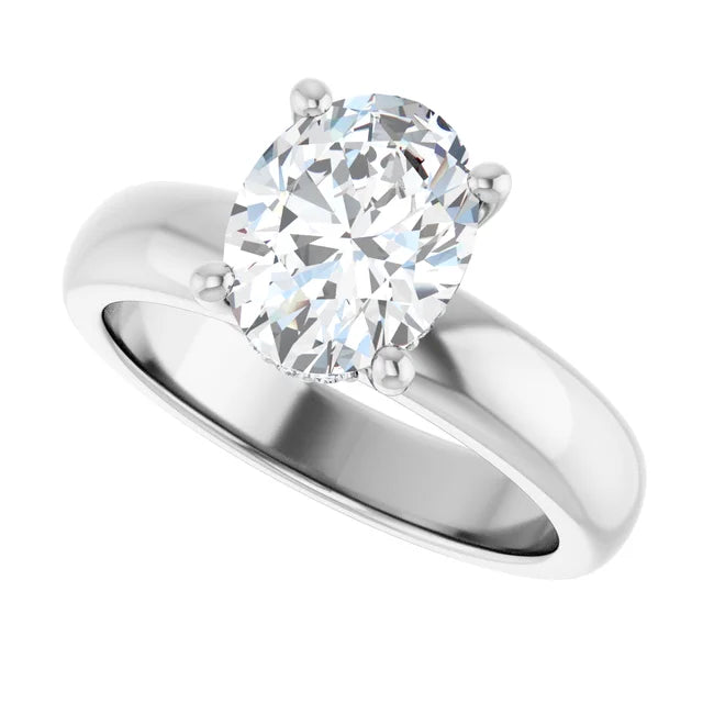 Timeless elegance meets modern brilliance in this 2.0ct oval-cut Moissanite engagement ring. Designed for those who appreciate classic beauty with a touch of sparkle, this ring features a stunning oval-cut center stone that radiates brilliance from every angle. The hidden halo of diamonds beneath the center stone adds an extra layer of shimmer, ensuring a breathtaking sparkle with every movement.