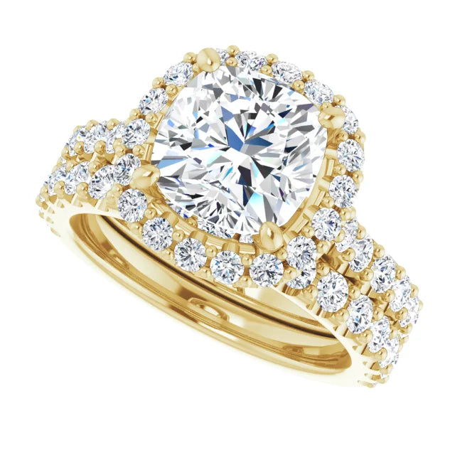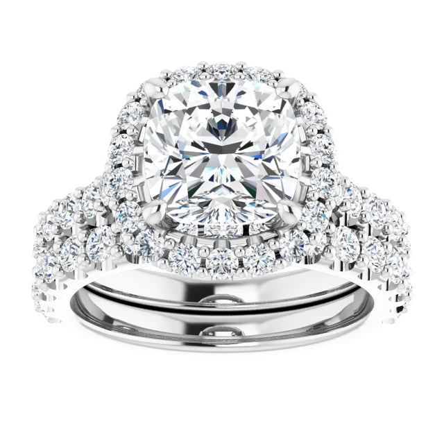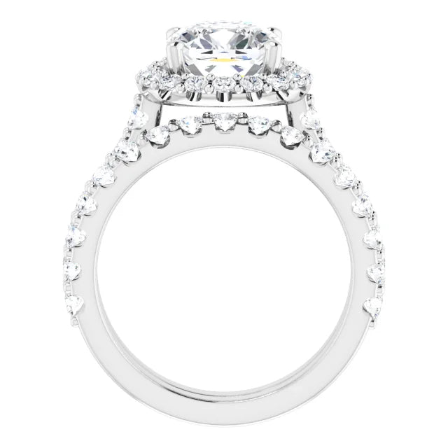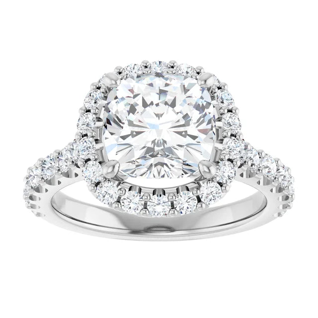 3.0ct Cushion Cut Lab Diamond Halo Accented Engagement Ring Set (Setting Only)