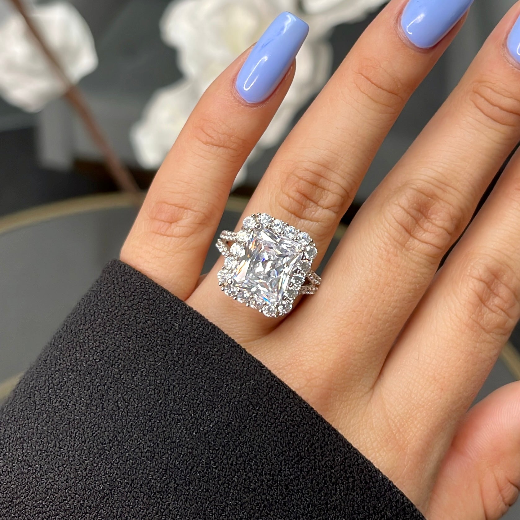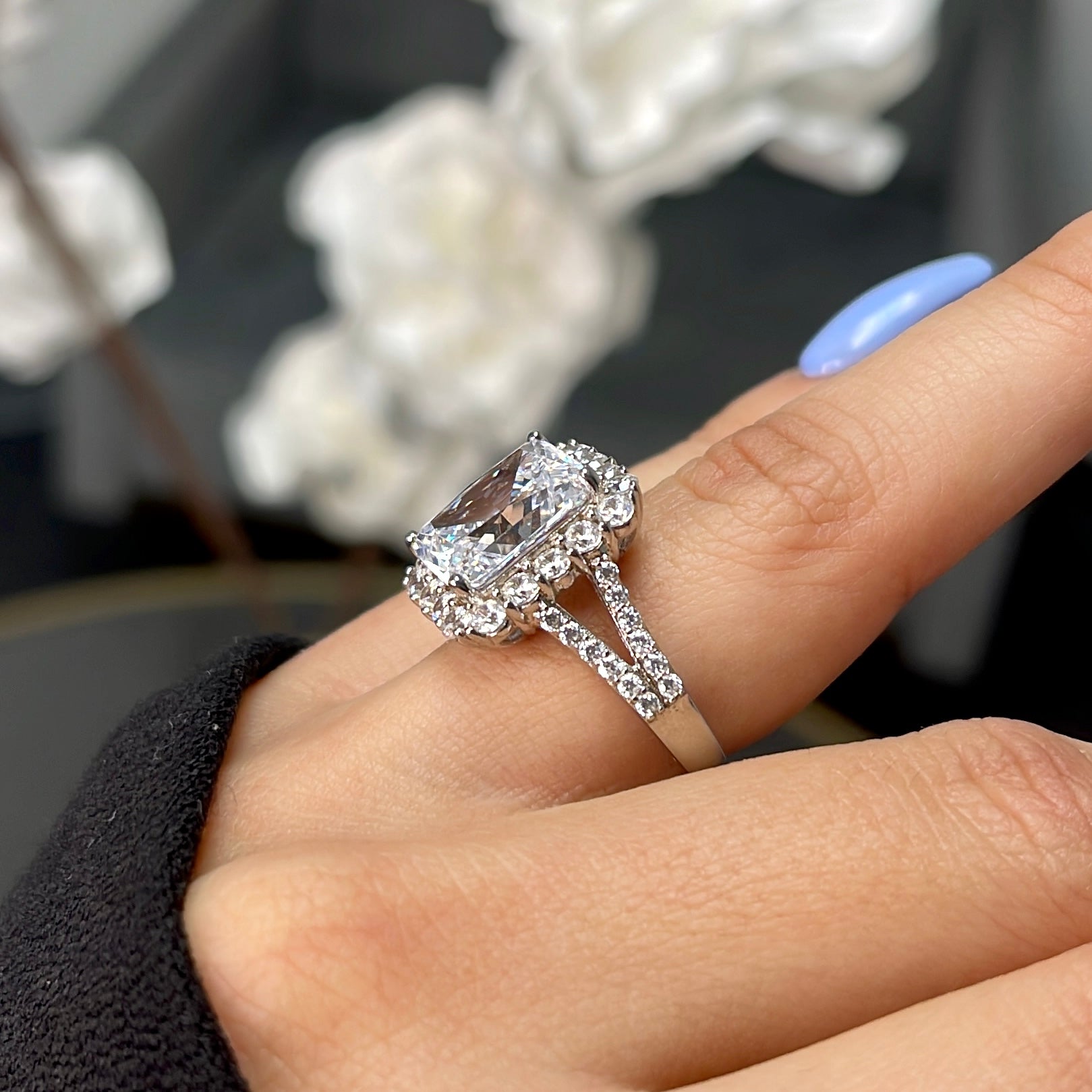 5.0ct Luxury Rectangle Radiant Cut CZ Sterling Silver Ring