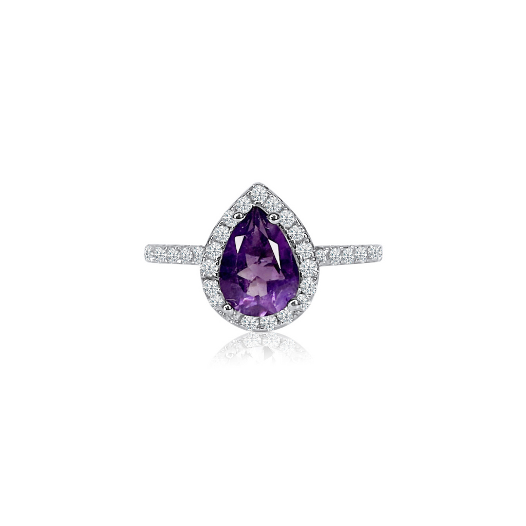 2.0ct Lab Ruby Pear Cut Moissanite Halo Ring