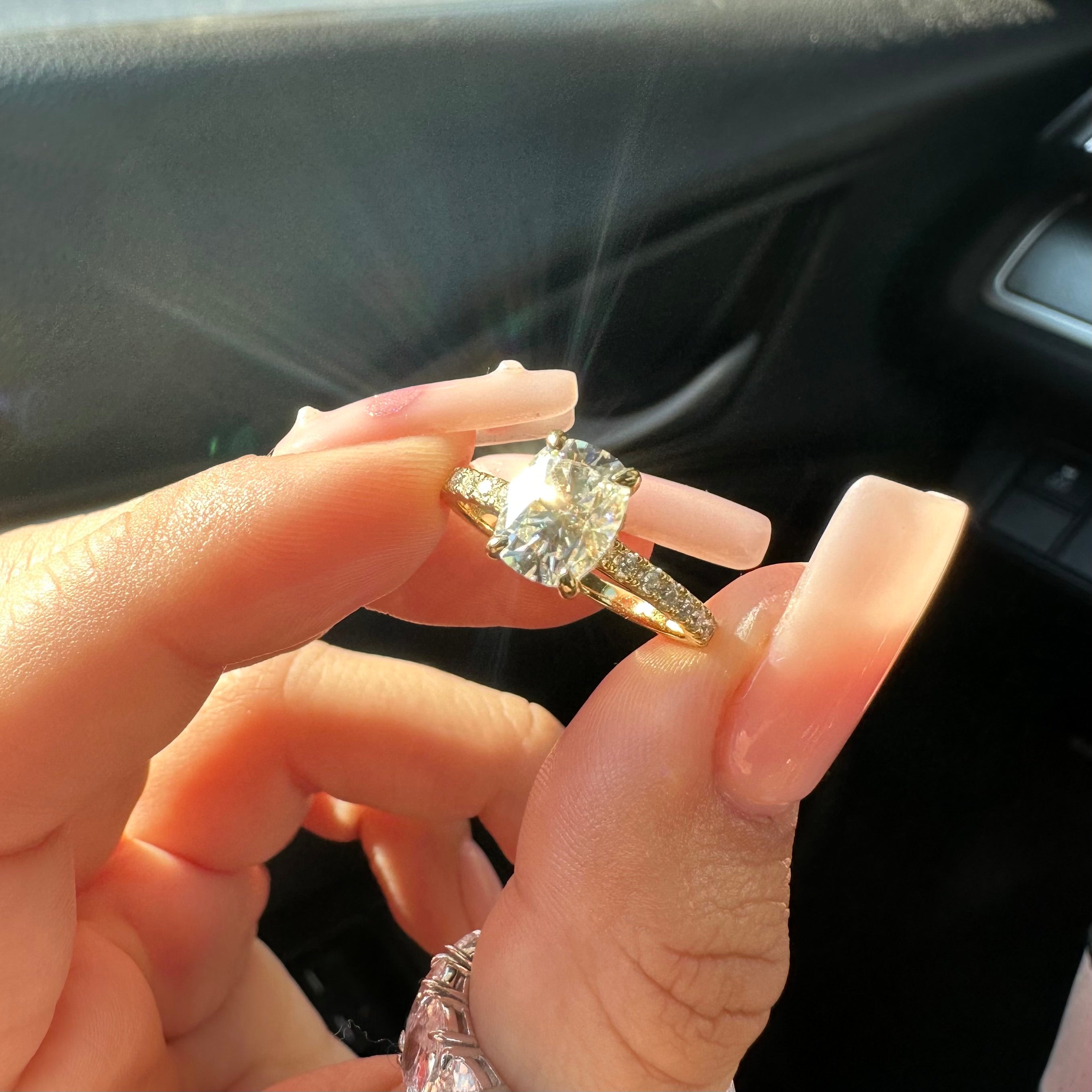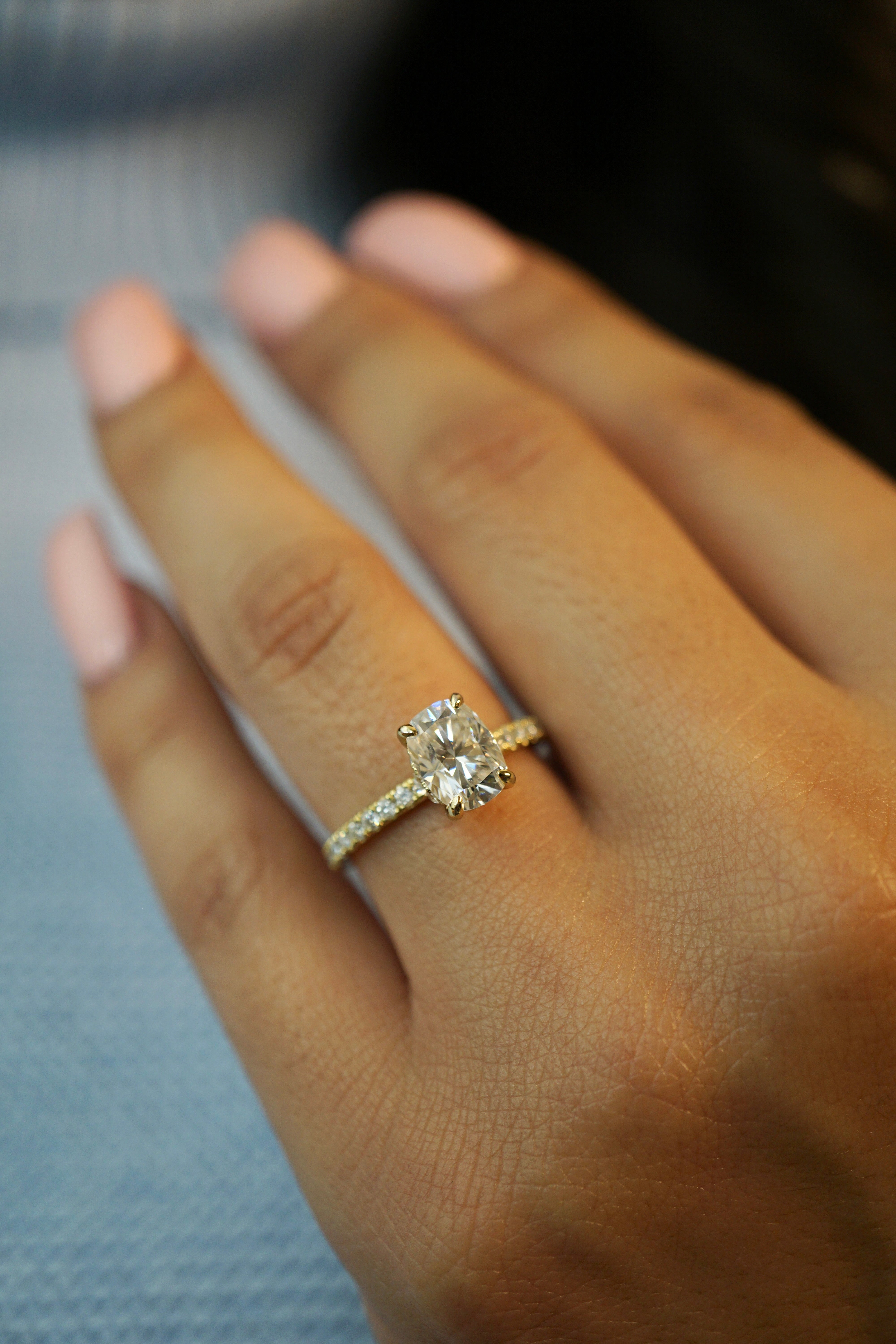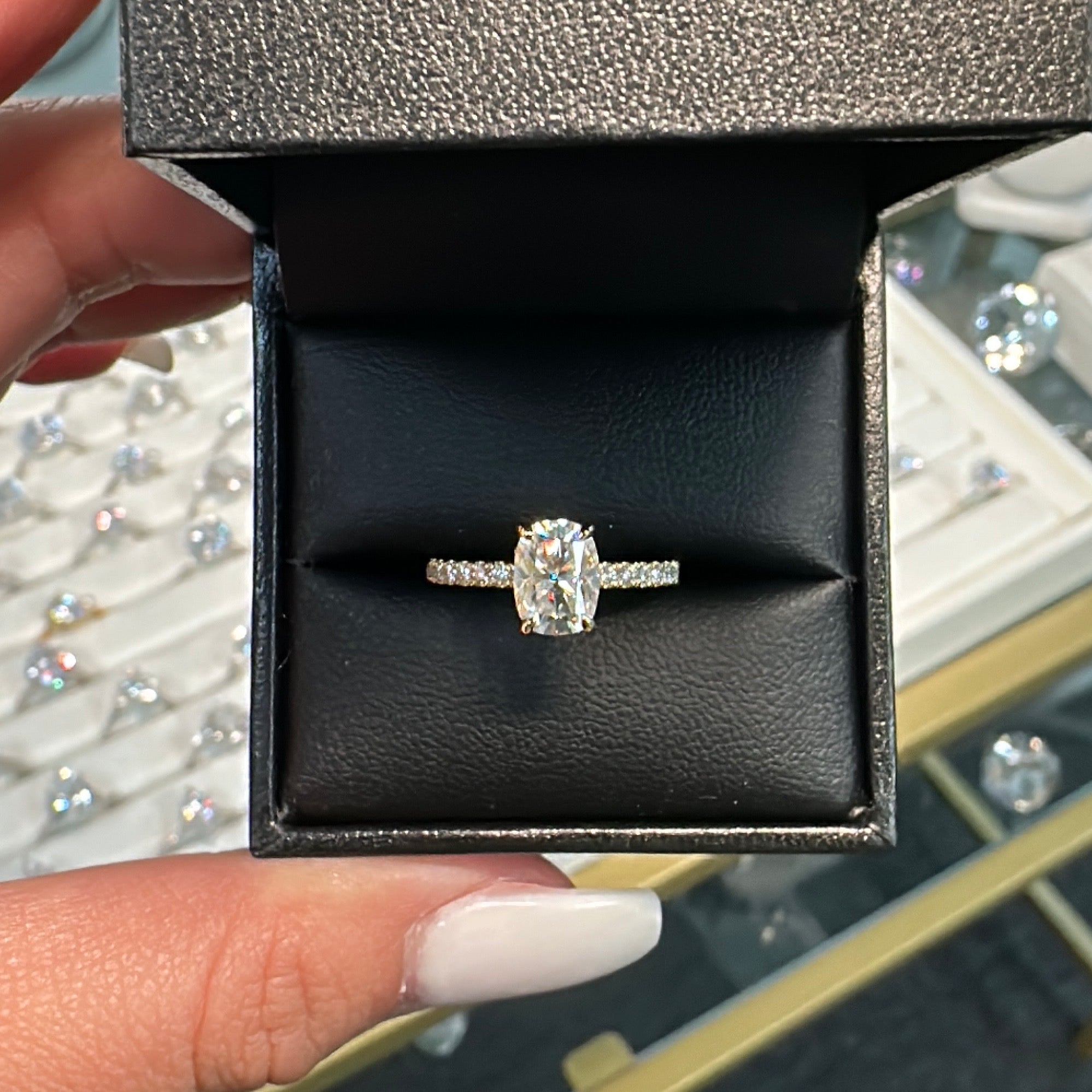 1.5ct Elongated Cushion Cut Moissanite Diamond Engagement Ring