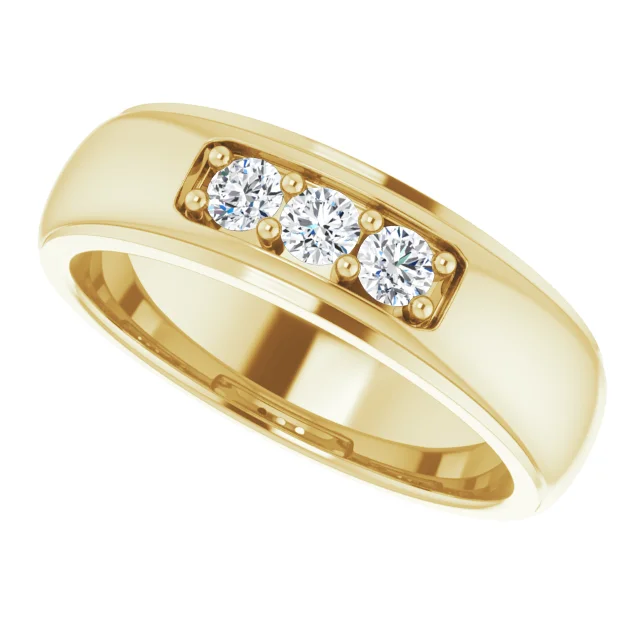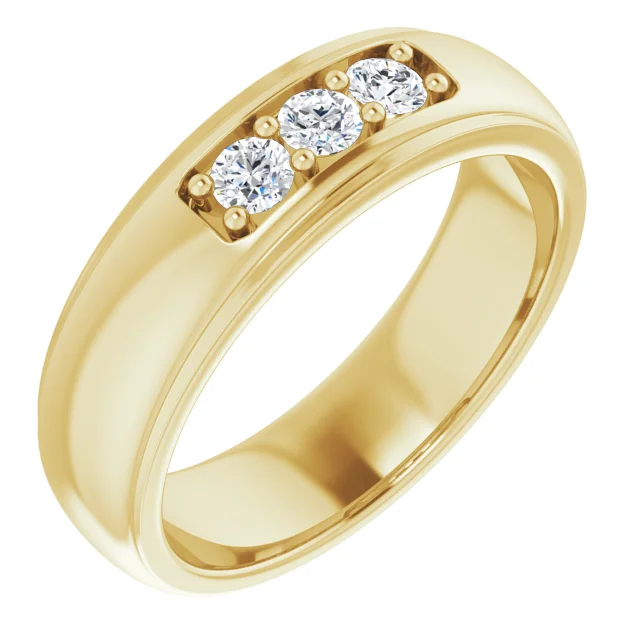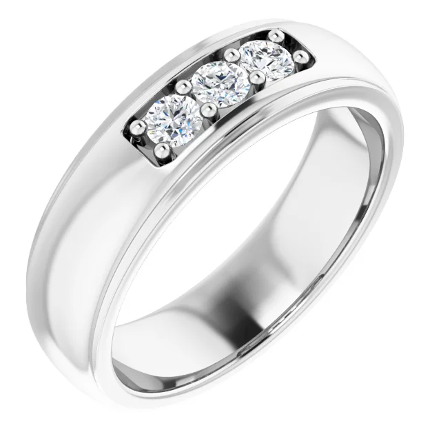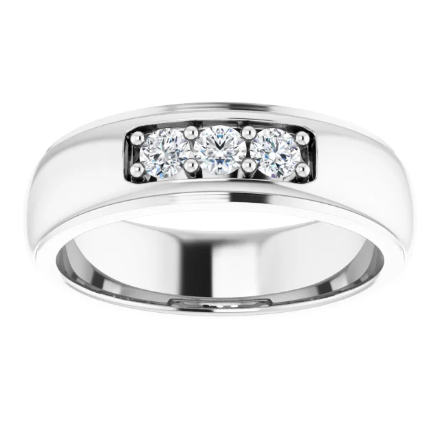 1/4ctw Three Stone Round Cut Lab Diamond Men's Wedding Band