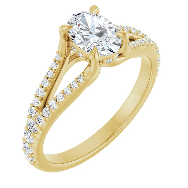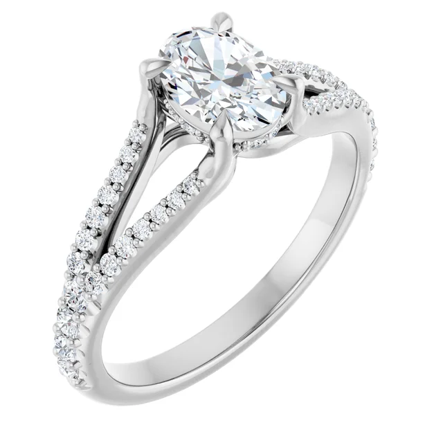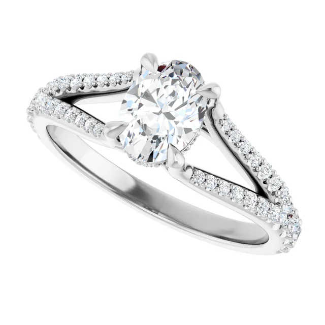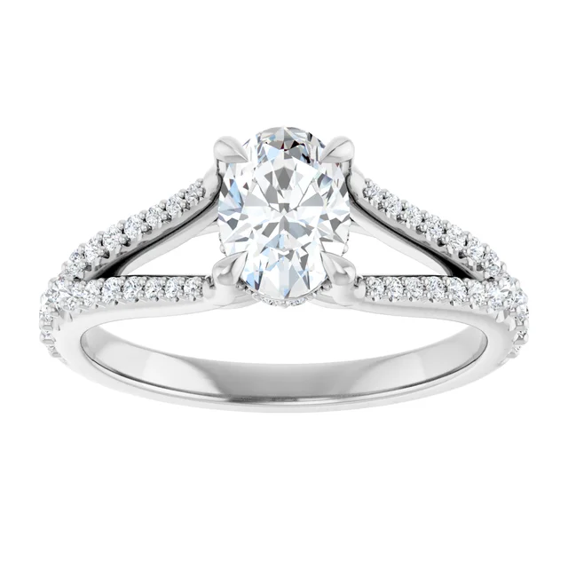 1.0ct Oval Cut Moissanite Lab Diamond Split Shank Engagement Ring