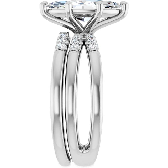 Crafted in your choice of solid platinum or 18k gold, this striking bridal set makes a bold yet elegant statement. Whether you select the full set or the engagement ring only, every detail is handcrafted for lasting beauty and sparkle.