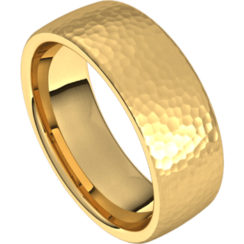 Two Tone Flat Hammered 6mm 14K Solid Gold Mens Wedding Band