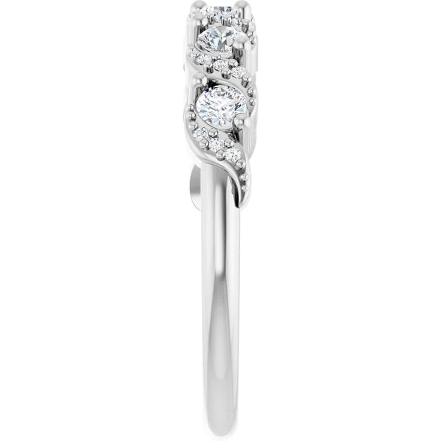 Round Moissanite Lab Diamond Three Stone Engagement Ring