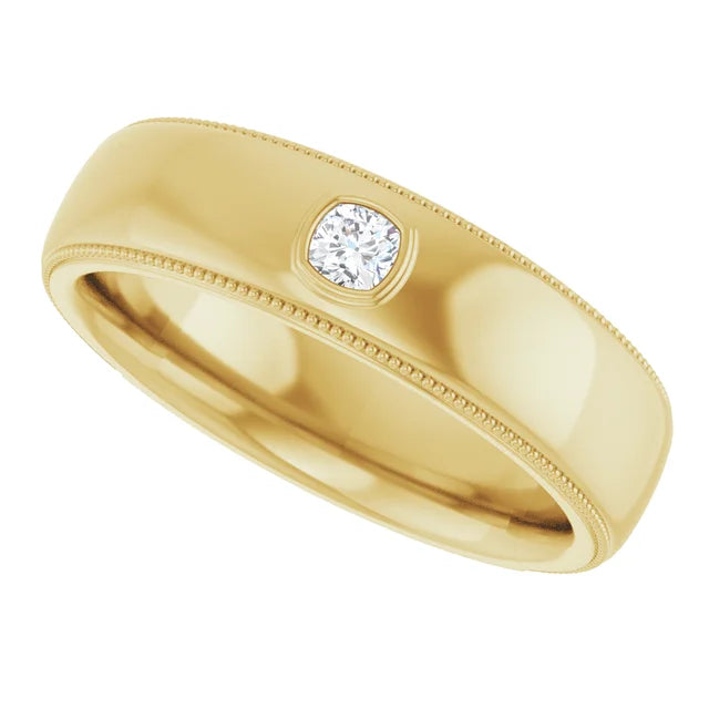 Beveled Edge 6mm 14K Solid Gold Mens Wedding Band