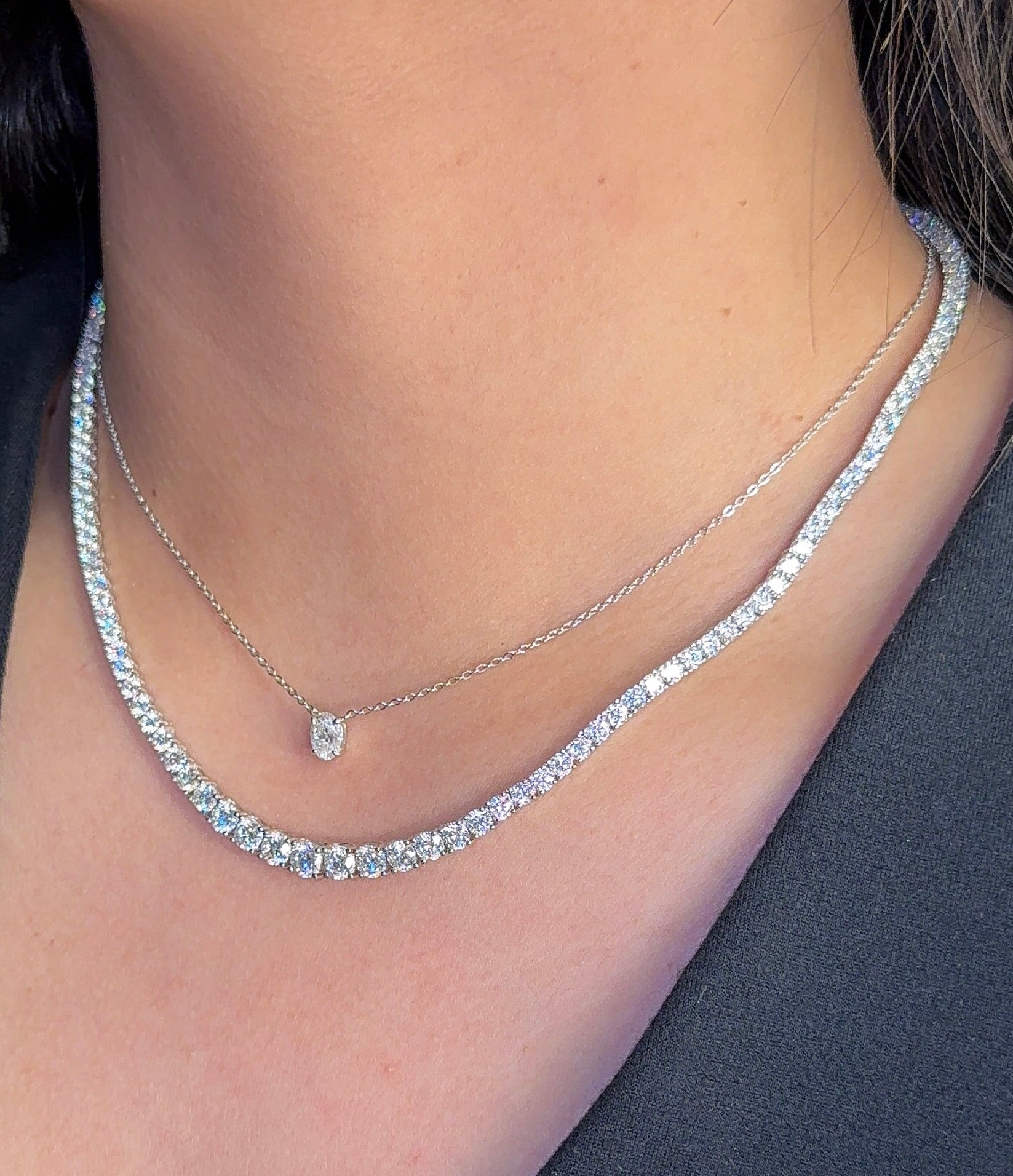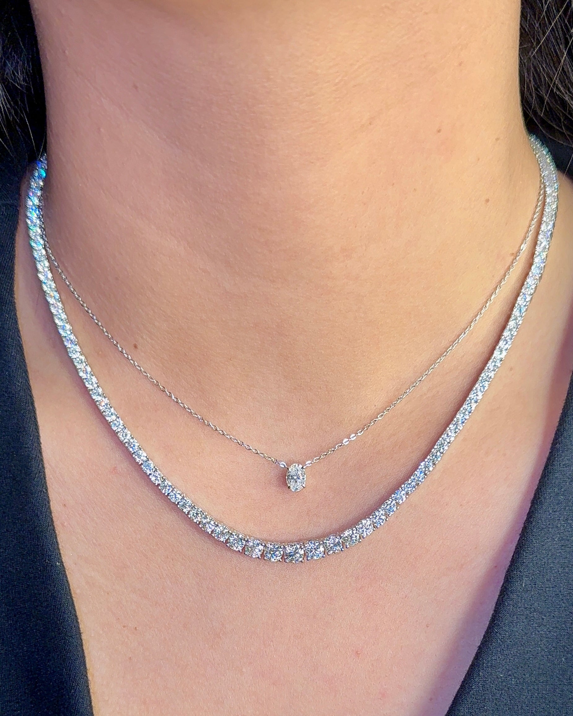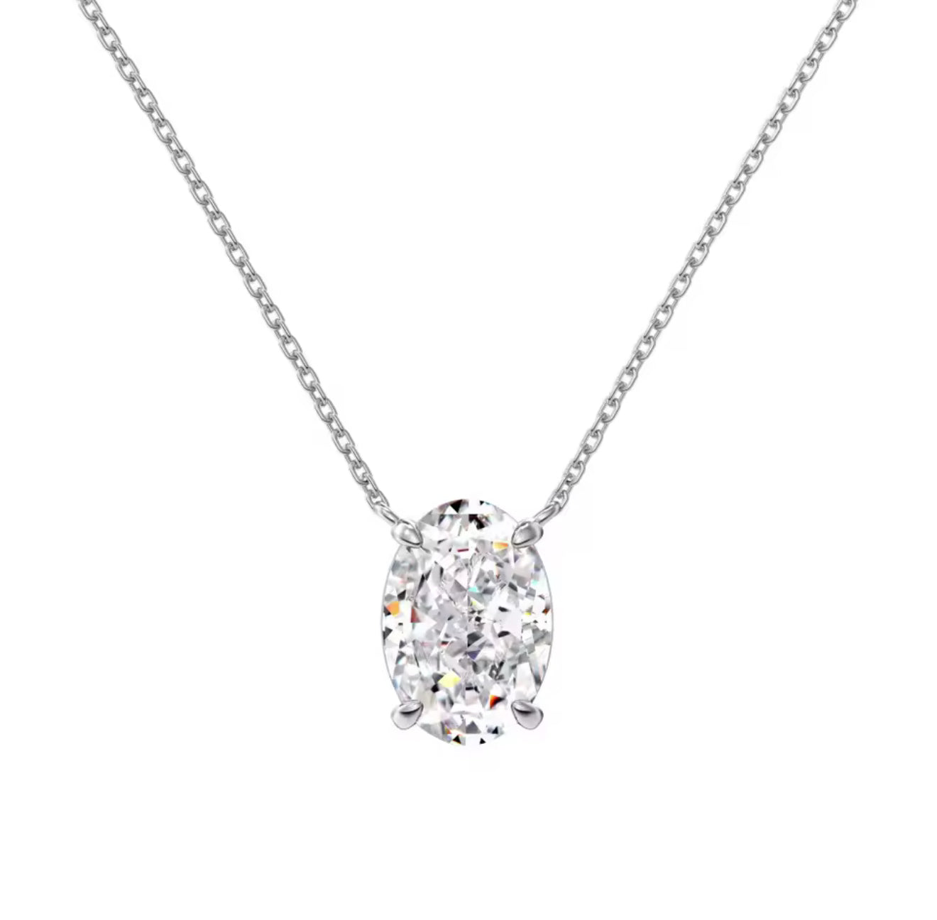 A simple east-west set Moissanite oval cut cable chain necklace makes a the perfect everyday essential.