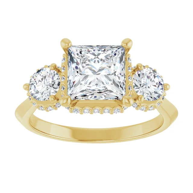Princess Cut Lab Diamond Accented Engagement Ring