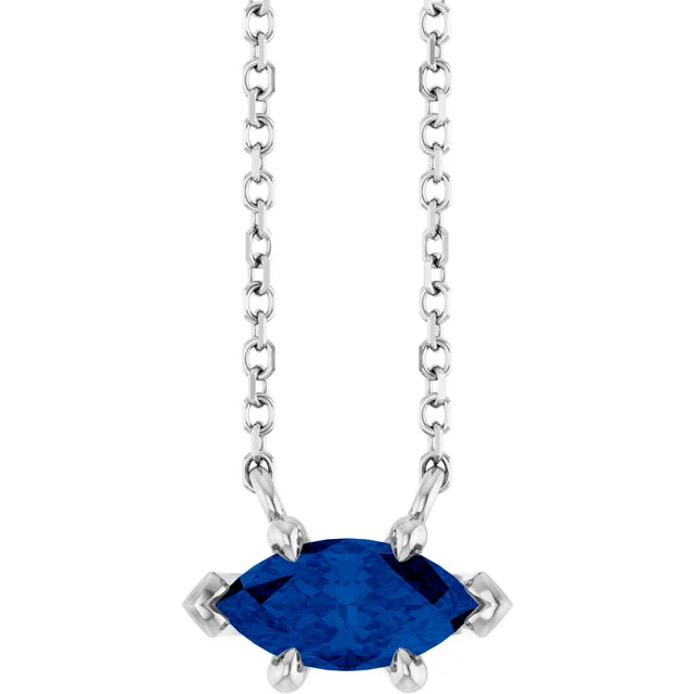 Natural Blue Sapphire East-West Set Marquise 14K Solid Gold Necklace