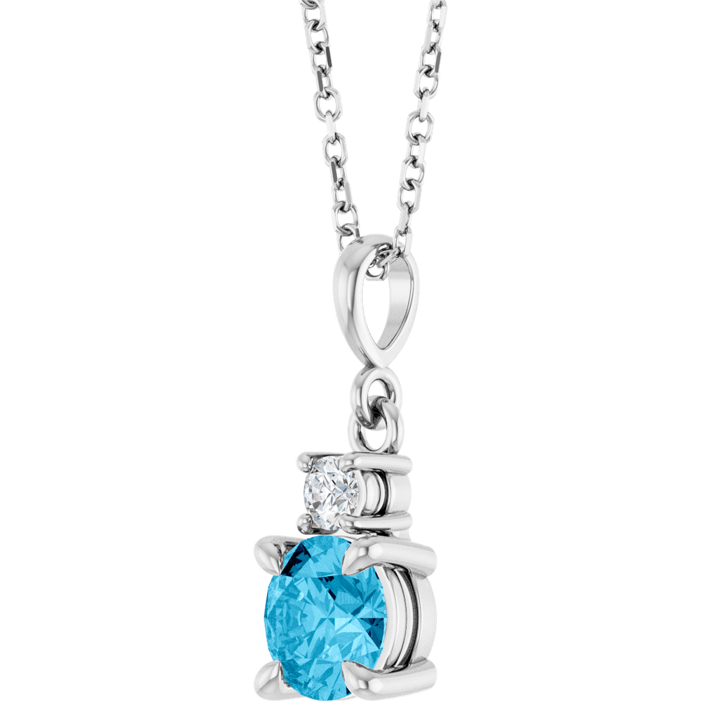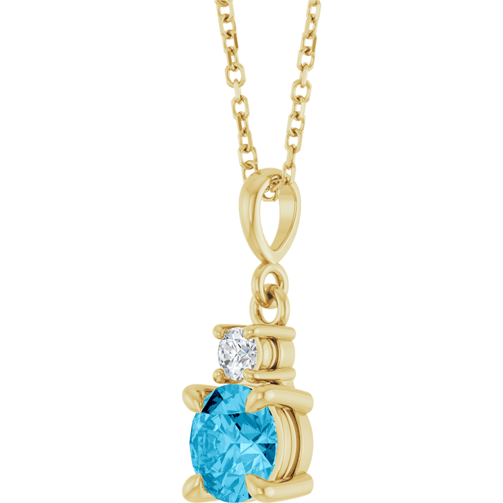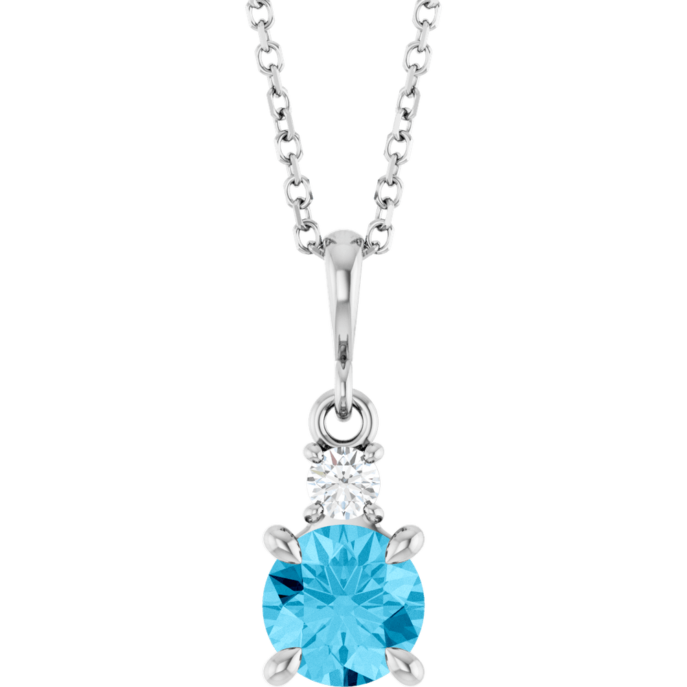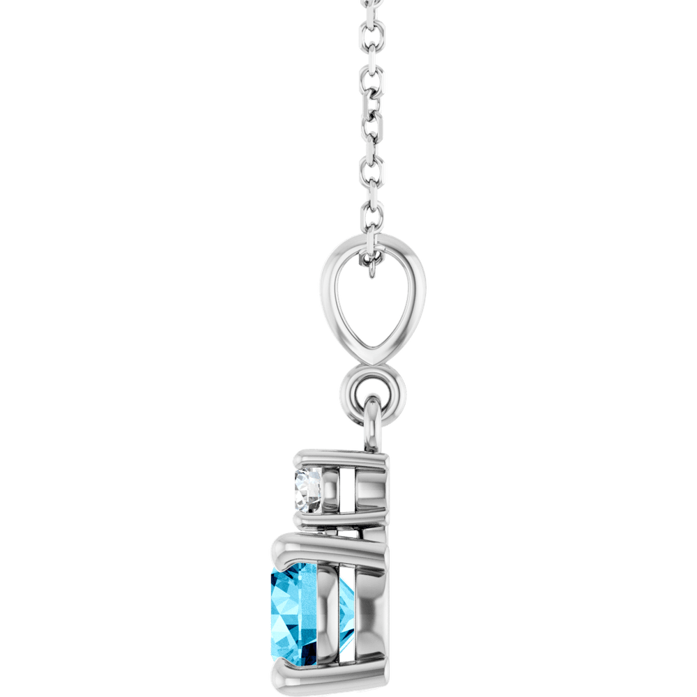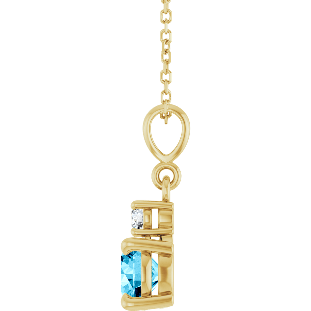 Two stones, two stories, one necklace. This pendant pairs a natural aquamarine with a brilliant diamond. The aquamarine’s soft, ocean-blue tone brings a sense of calm and new beginnings, while the diamond shines as a symbol of forever.