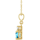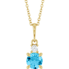 Two Stone Natural Aquamarine & Diamond 14K Solid Gold Necklace