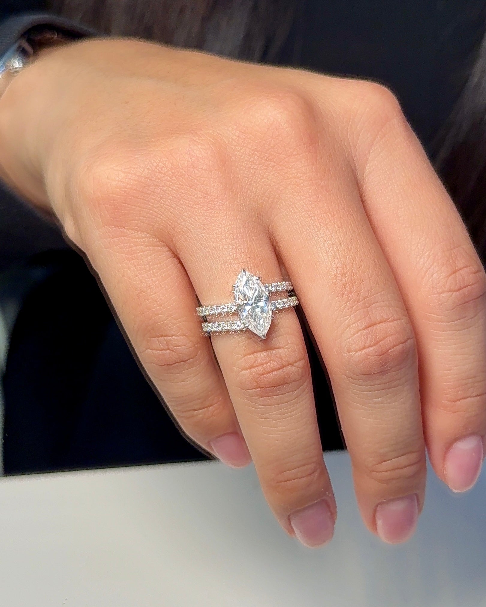 Anillo de oro macizo de 14 quilates con diamantes de laboratorio de talla marquesa de 3,0 ct