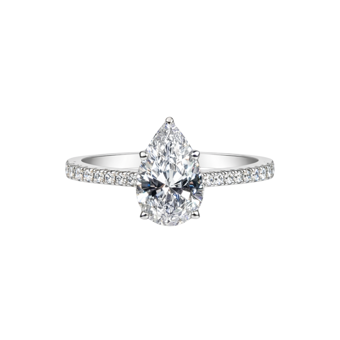 Anillo de compromiso de plata de ley con corte de pera rosa y blanco de 1,0 ct