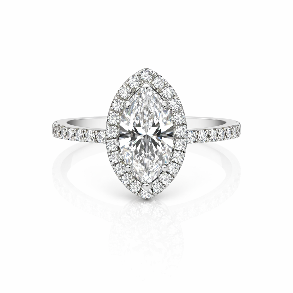 Anillo de compromiso con halo de moissanita de corte ovalado de 2,0 ct y cuerpo dividido