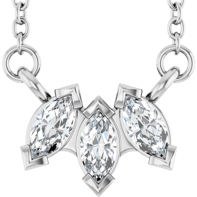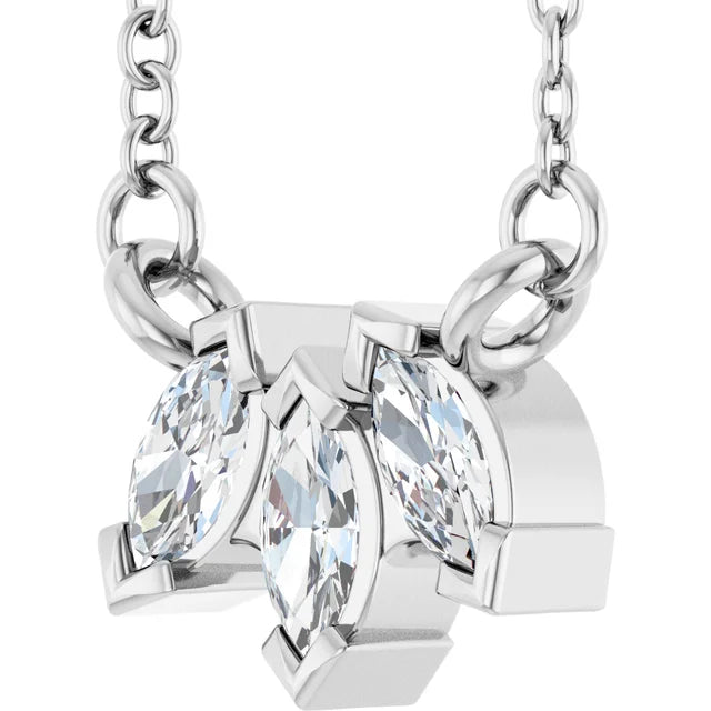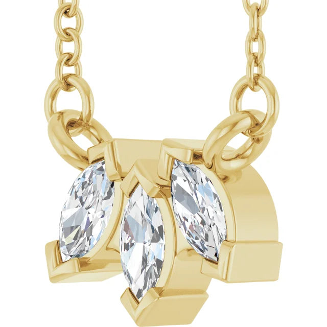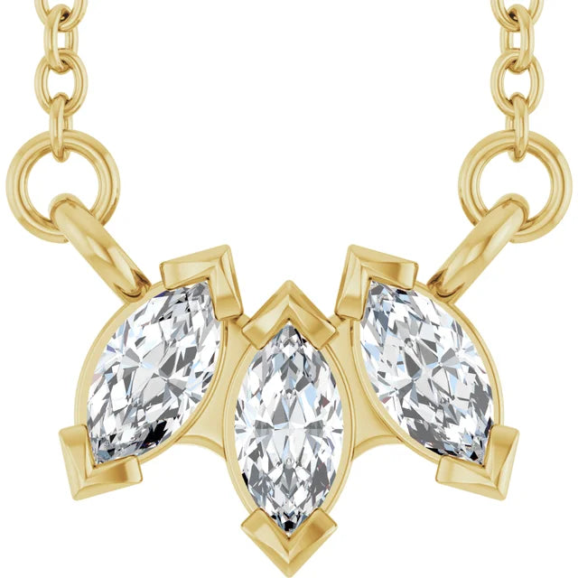 1/5CTW Three Stone Marquise Cut Lab Diamond 14K Solid Gold Necklace