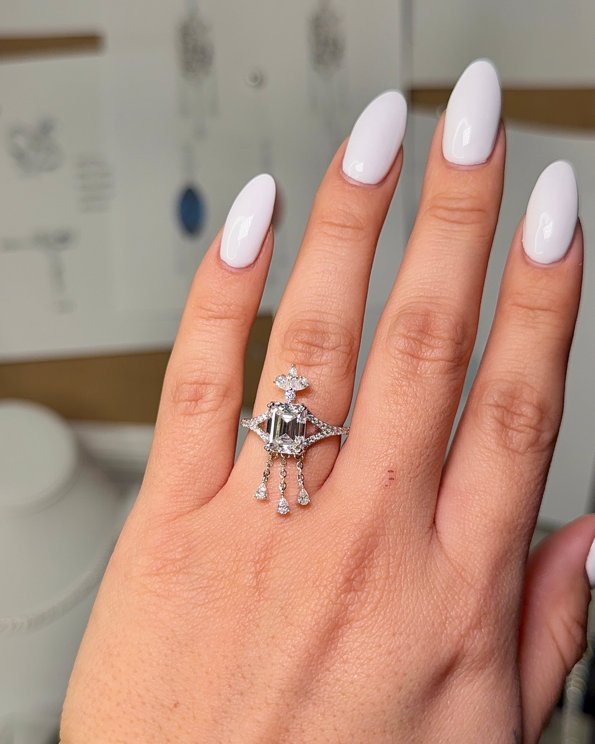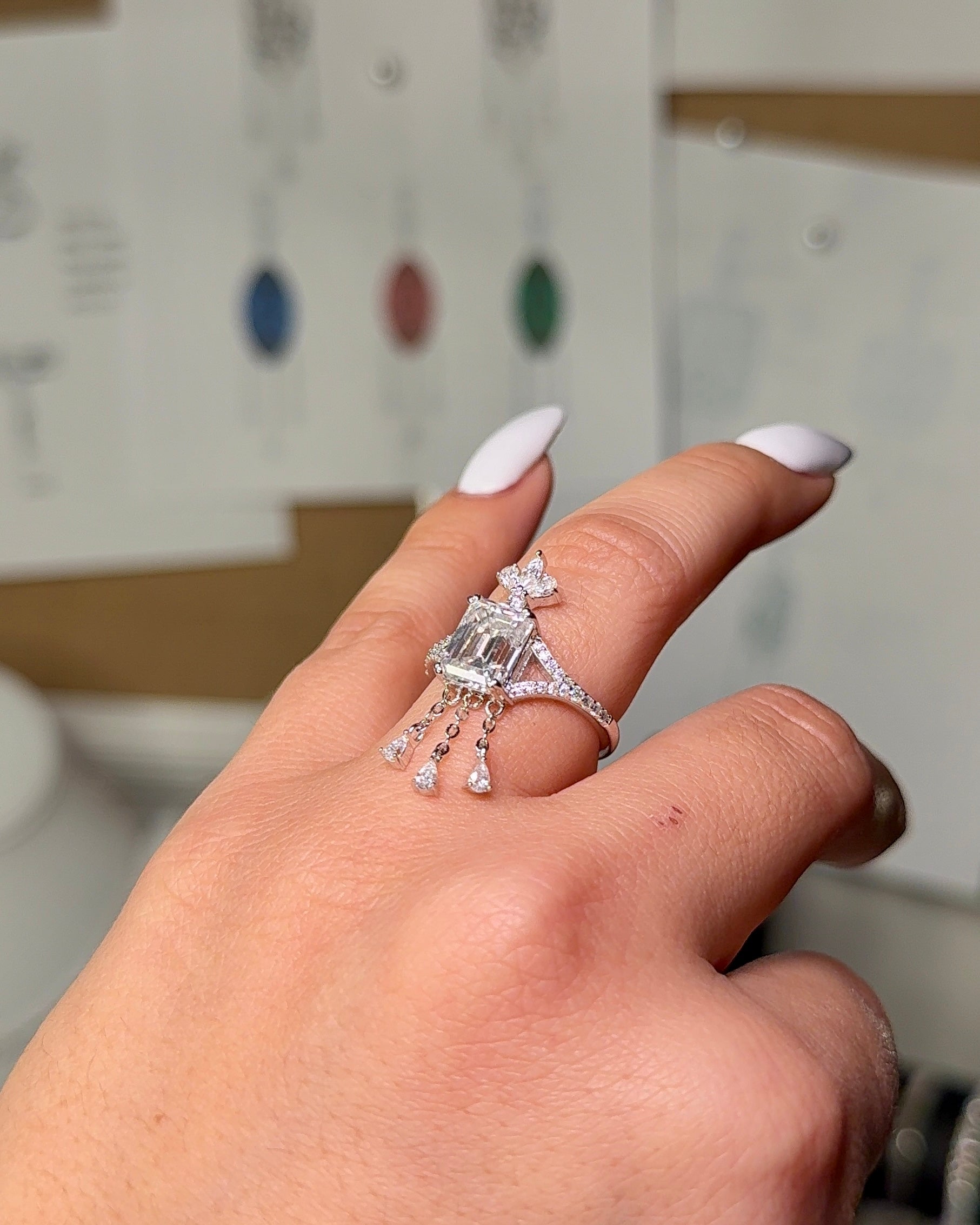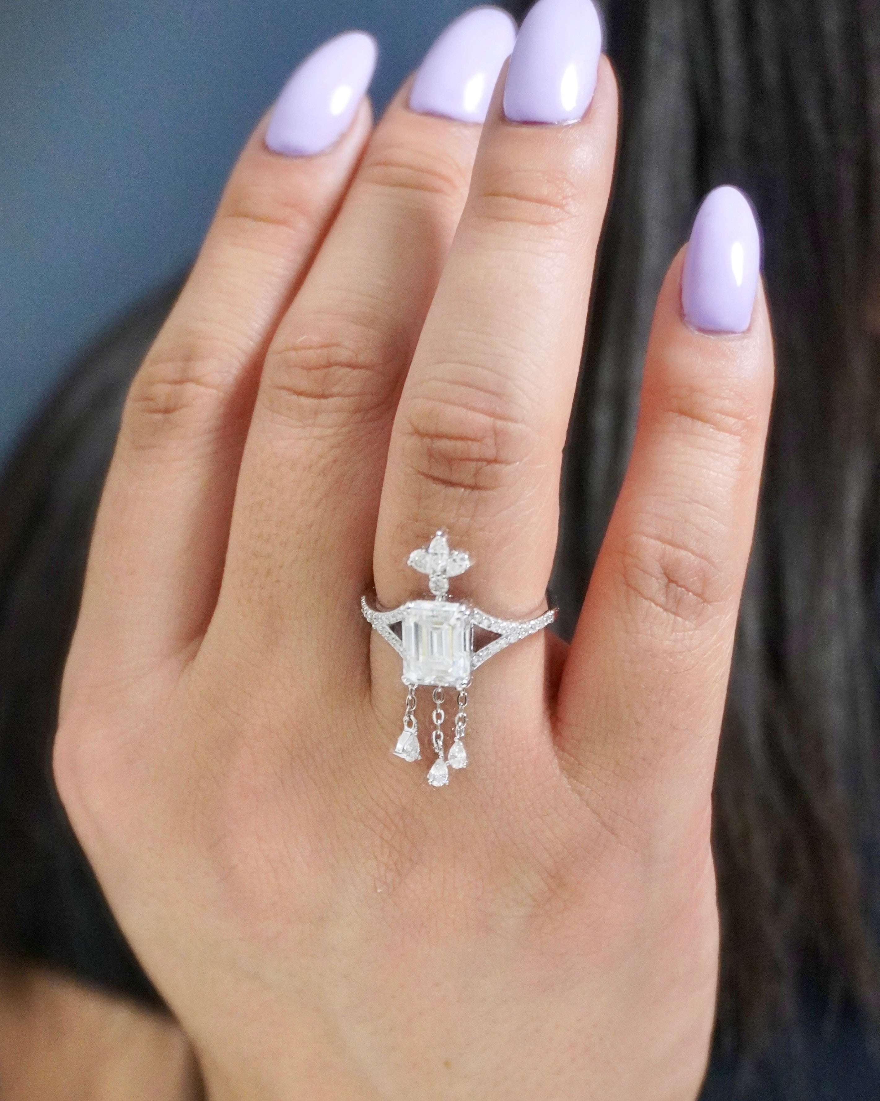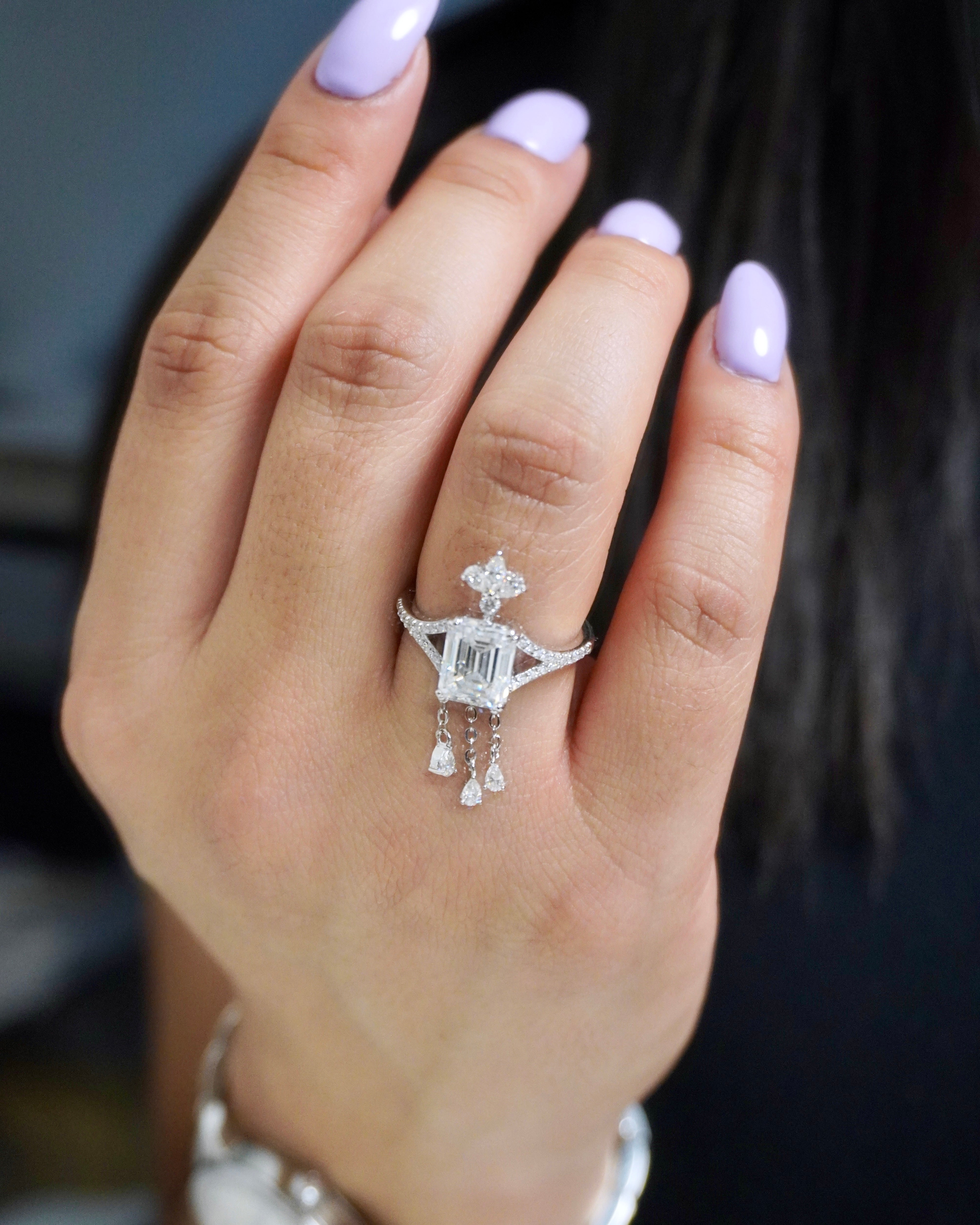 Anillo colgante de oro macizo de 14 quilates con diamante de laboratorio de talla esmeralda de 3,0 ct