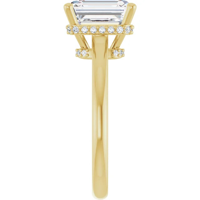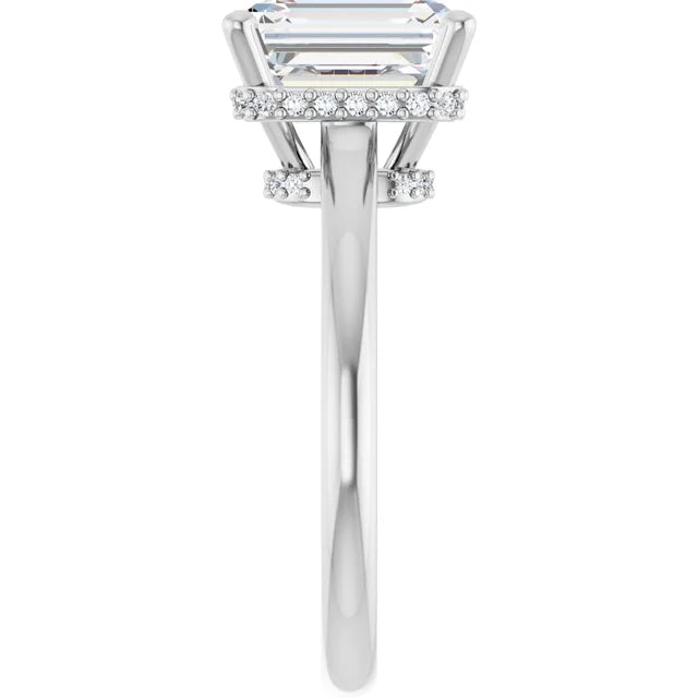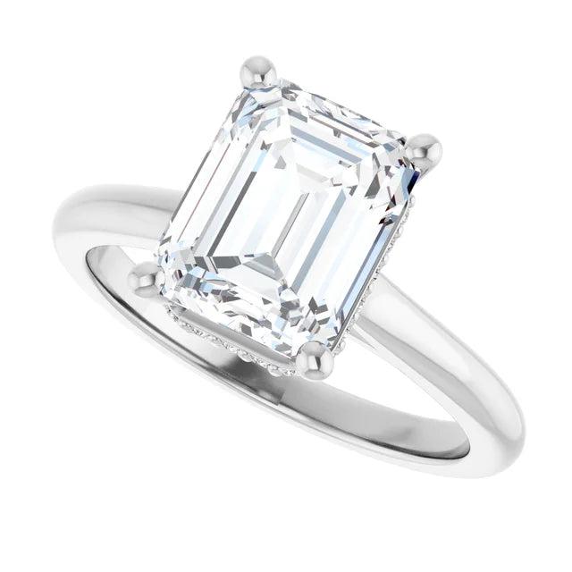 2.5ct Emerald Cut Lab Diamond Double Hidden Halo Solitaire Engagement Ring