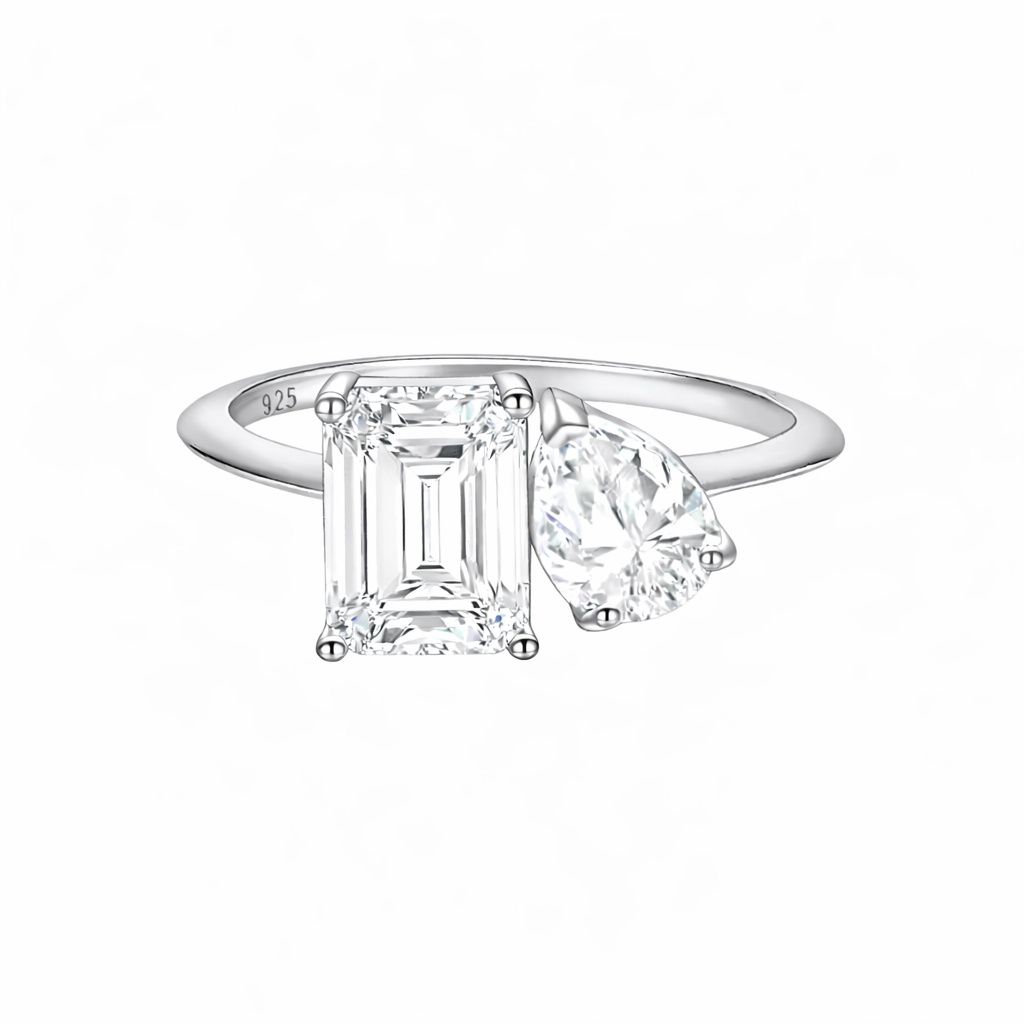 Toi Et Moi Emerald Cut Pear Cut CZ Sterling Silver Ring
