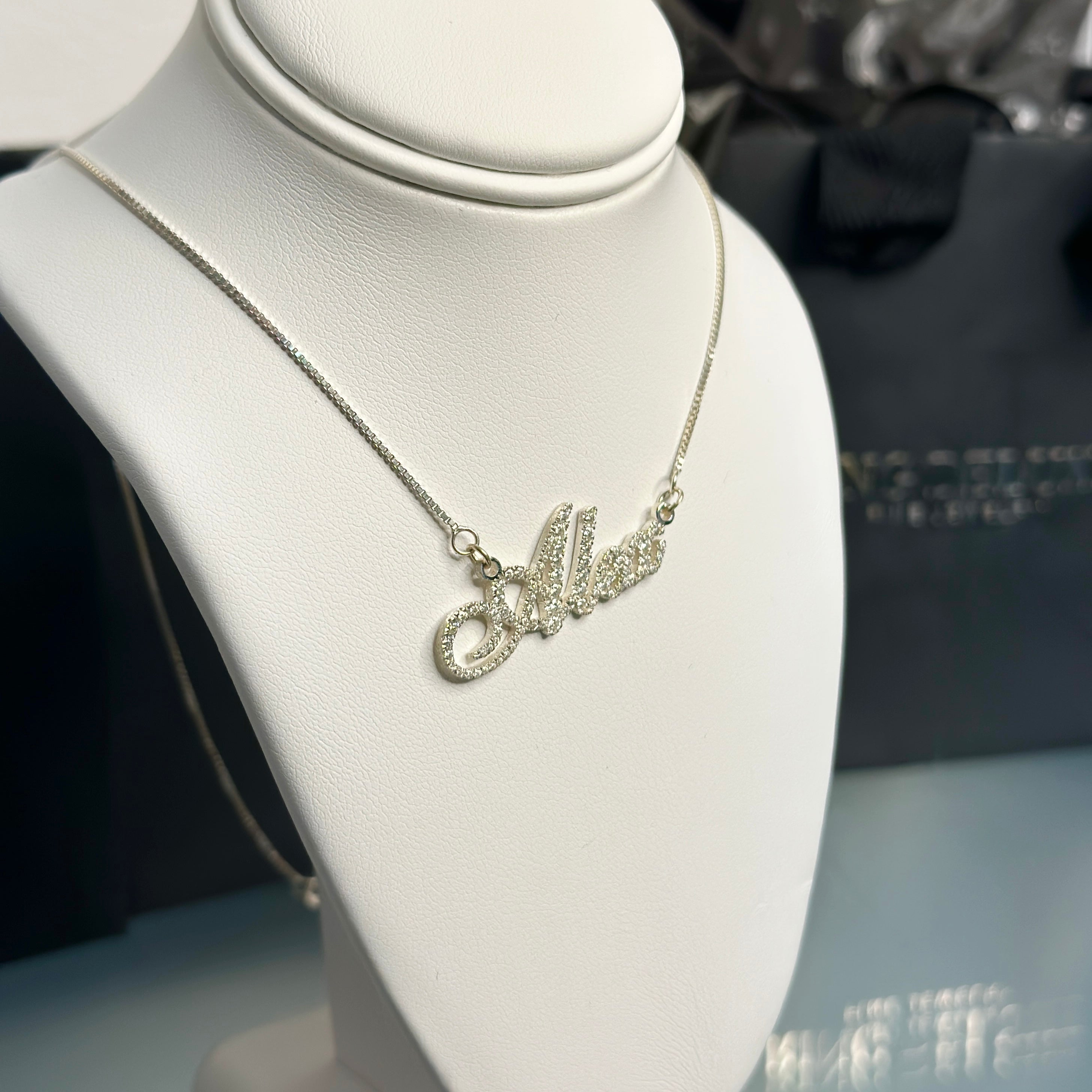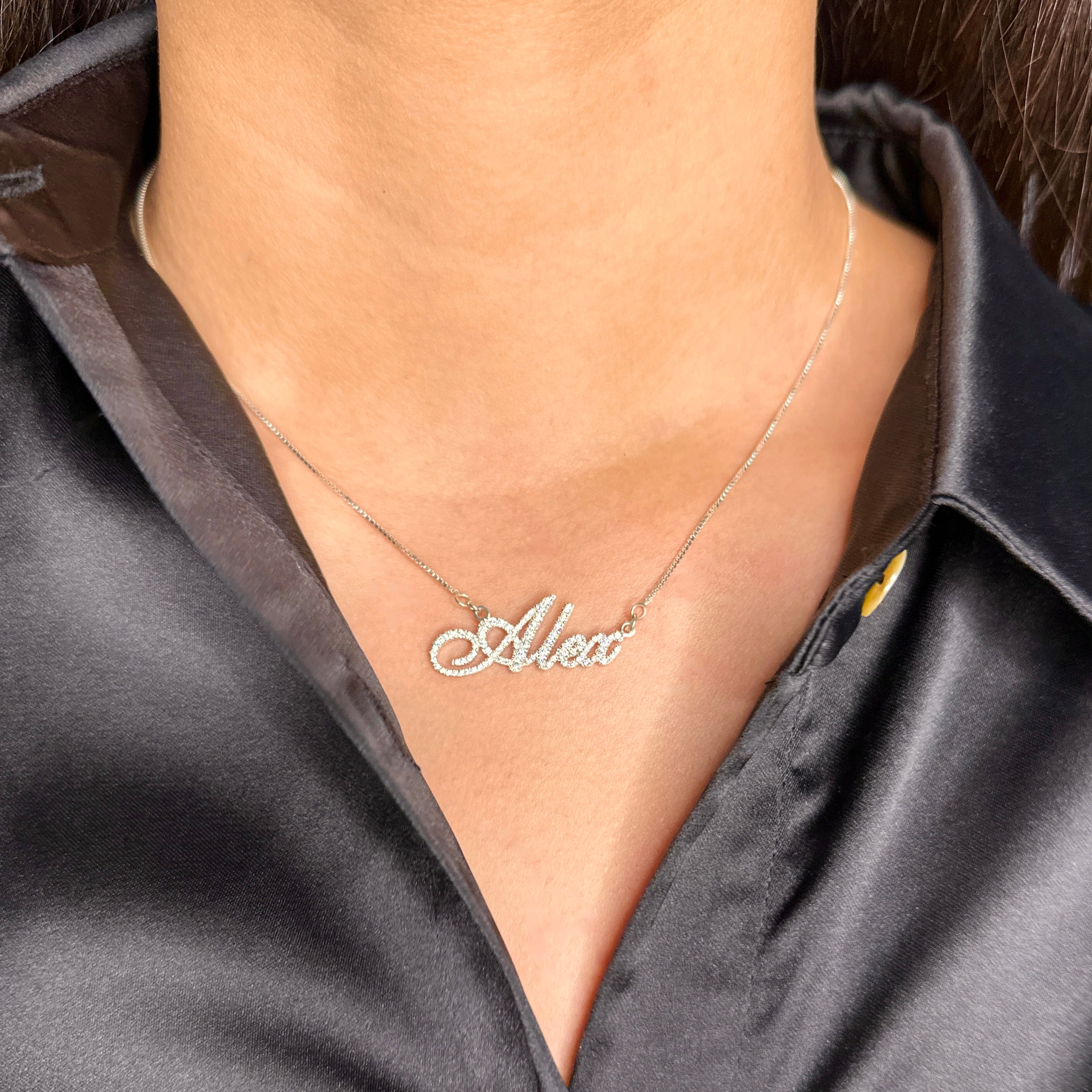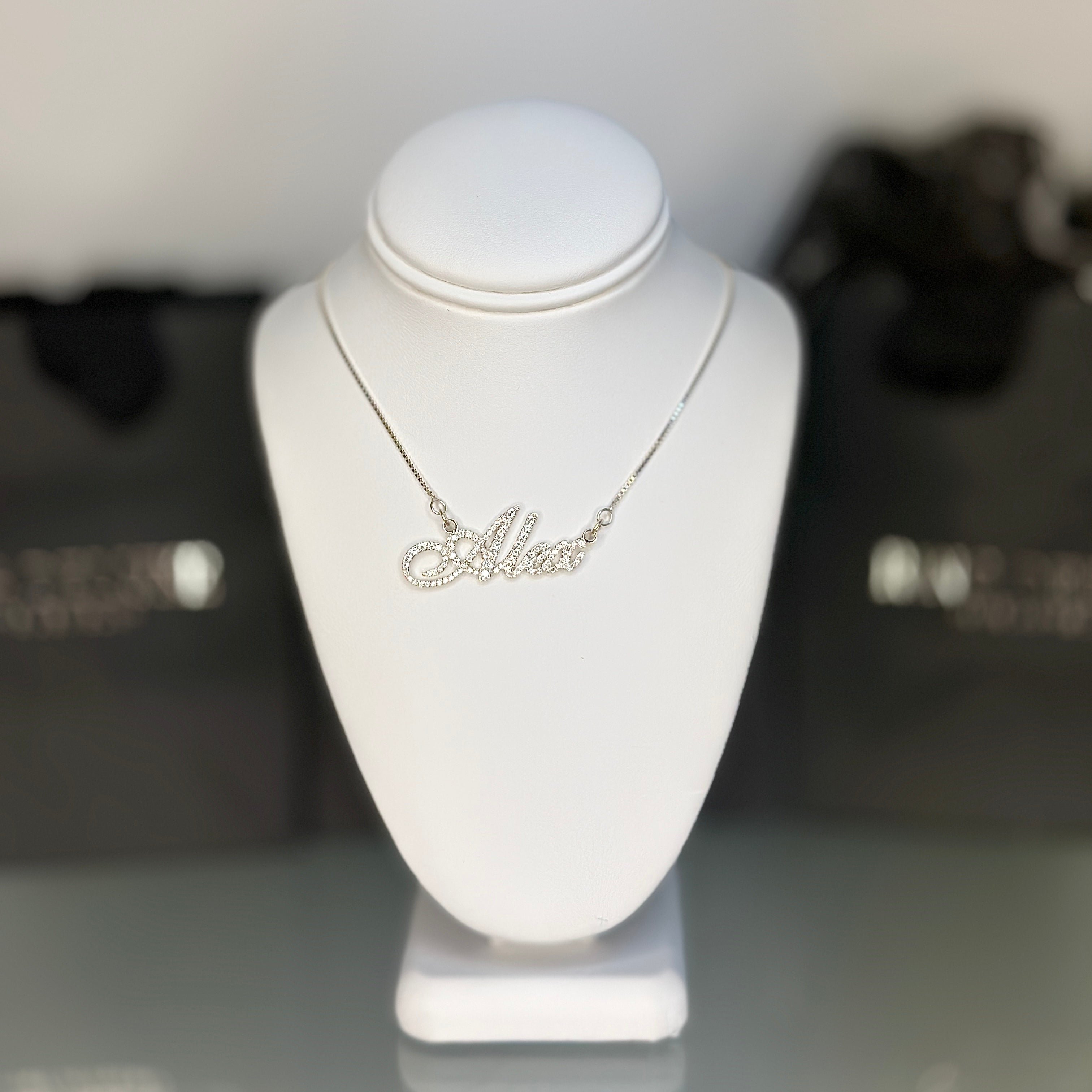 This gorgeous personalized necklace is the perfect gift to yourself or someone special in your life. The Moissanite diamonds make this necklace sparkle in any light with their brilliance and beauty. Personalize your necklace today!