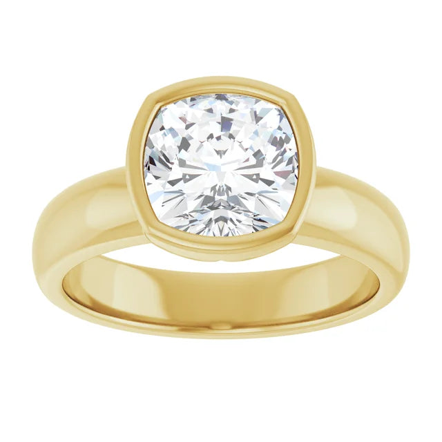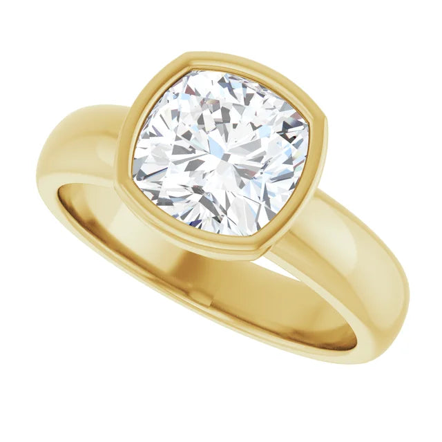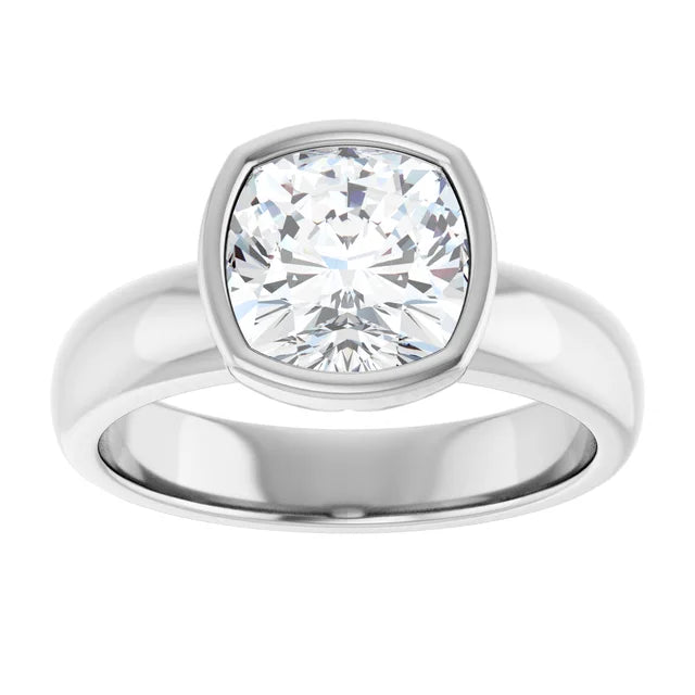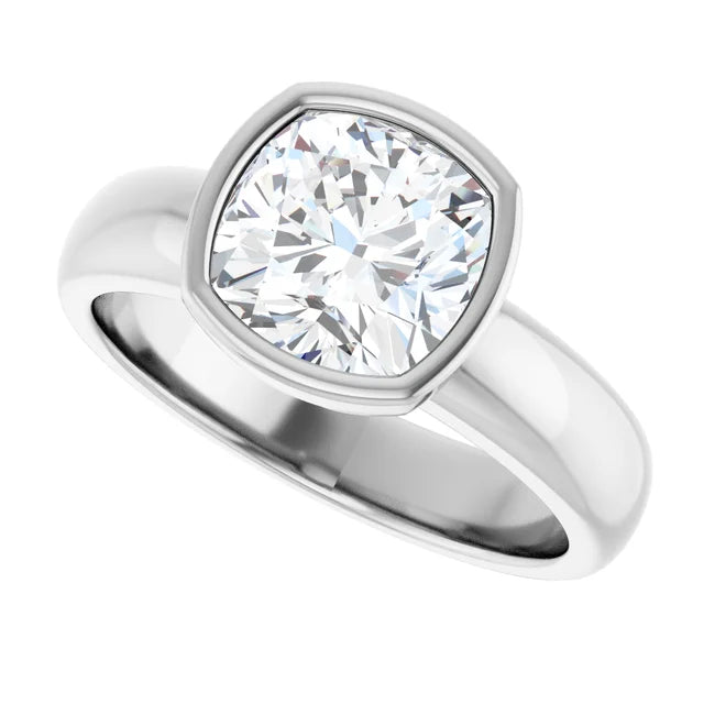 2.0ct Cushion Cut Bezel Set Solitaire Engagement Ring