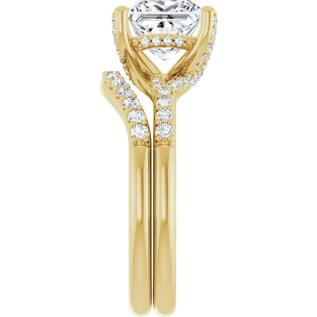 Offered as a standalone engagement ring or as a complete bridal set with a matching pavé wedding band, this piece is available in your choice of 14K gold, 18K gold, or platinum. The setting can also be customized with natural or lab-grown diamonds, allowing you to tailor every detail to your unique love story.